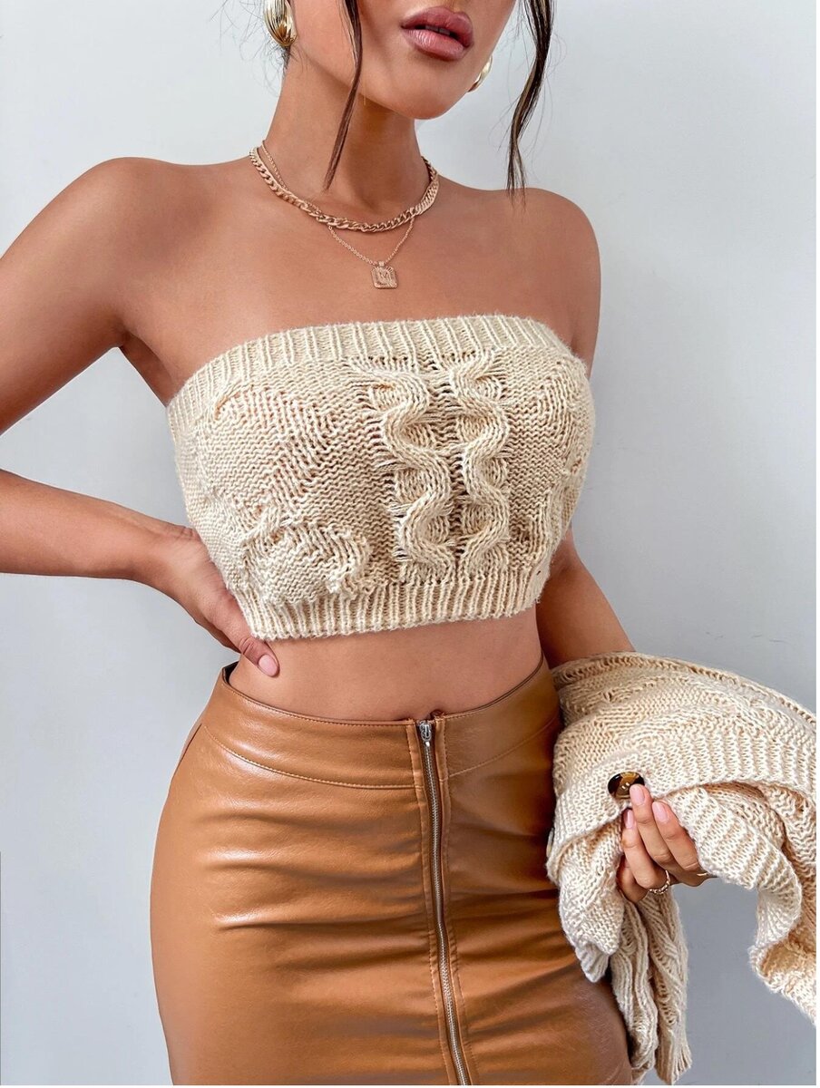 В этой двойке топ - бандо, а он очень требователен к фигуре. Обычно в подобных двойках кардиган носится интенсивнее, а такой топ вполне можно носить еще и как шарф-снуд. Получится в плане функциональности даже не двойка, а тройка.