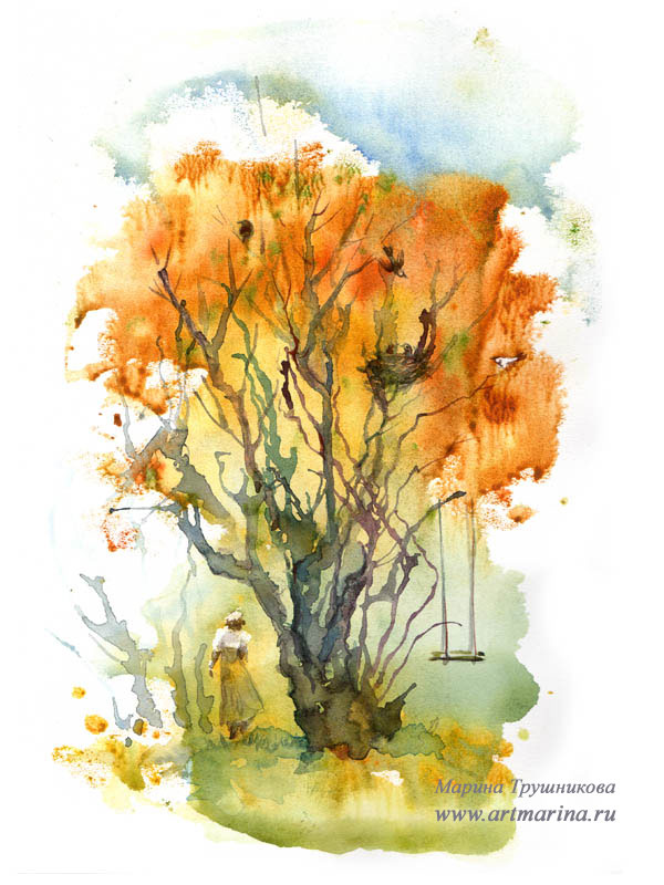 В завершении нарисуйте элементы, которые придадут картине больше образности. Это могут быть трава и цветы, птички и бабочки, люди и животные. Дайте волю своей фантазии!