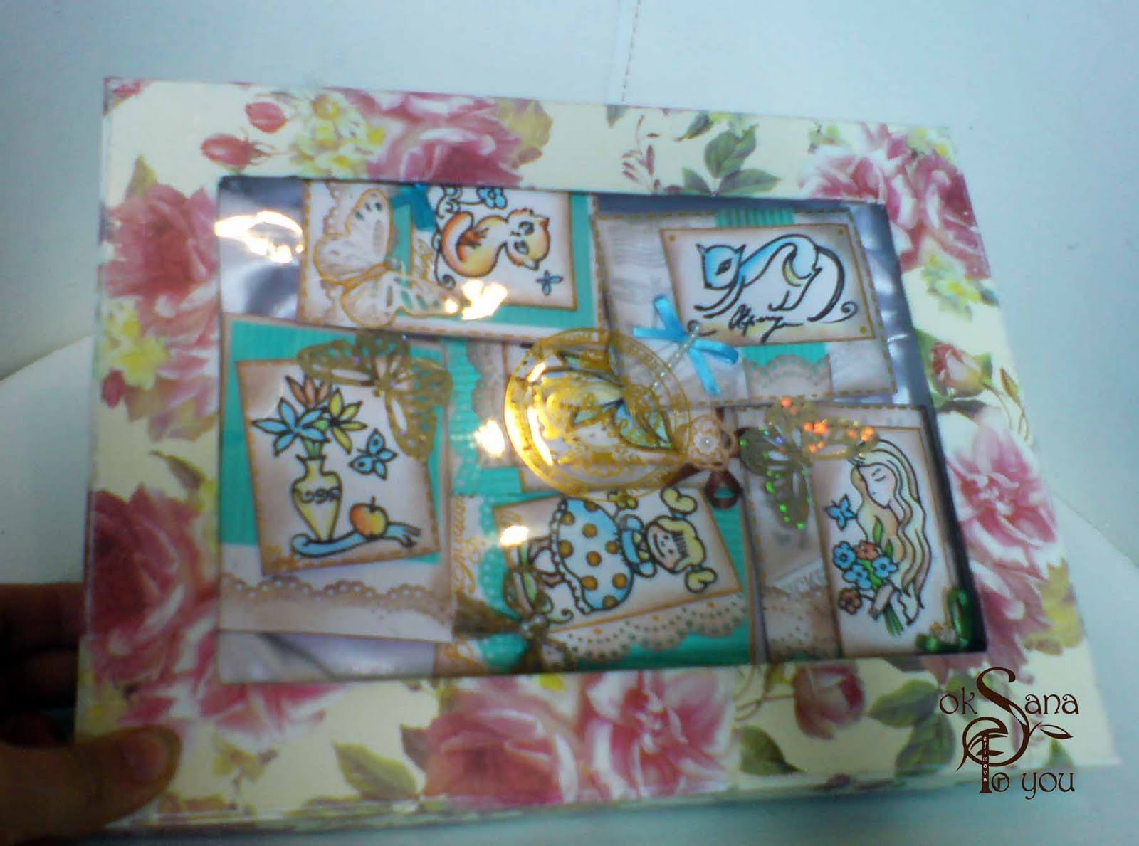 И раз это серия - выполнила их по возможности в одном цвете и стиле. Для фона использовала штамп от Prima Marketing "Дорожный набор" который вчера получила в посылочке из магазина "Храните воспоминания" (Спасибо Лида! Штамп чудесный!!!) Бабочки и бумажное кружево - дыроколы от Марты Стюарт. Бирюзовая бумага гофрирована с помощью кримпера. Жемчужные аксесуары и ленты.... Ах да! Все картинки приподняты с помощью вспененного скотча! Всё дополнительно тонировано дистресс чернилами от Тима Хольтца, картинки придуманы и нарисованы на одном дыхании от руки с помощью черного маркера и тонированы цветными карандашами :) Ну вроде всё... Теперь по порядку!