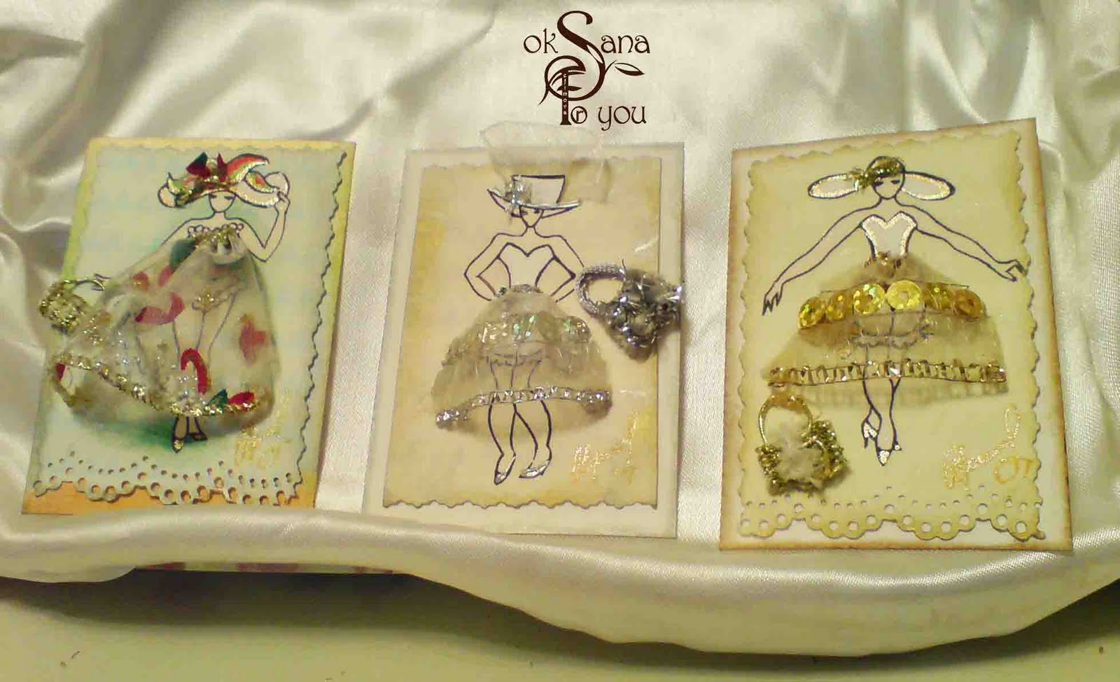 Вот получилась такая небольшая, но достаточно ювелирно сделанная серия АТС под названием "Дефиле". Пока делала - вспоминался мастер который блоху подковал :) Но результатом осталась очень довольна, несмотря на два ожога горячим клеем :)