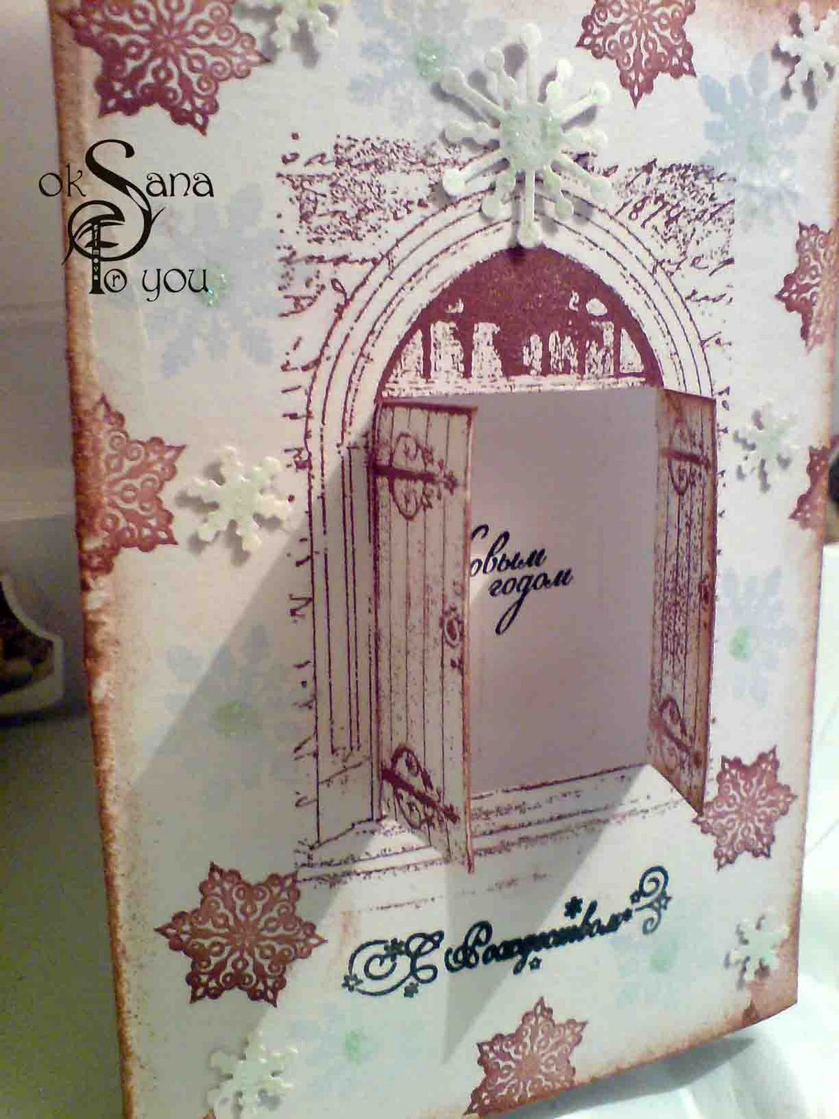 Почему то захотелось использовать именно эти оттенки для новогодней открытки. Винтажненько так получилось... :)))