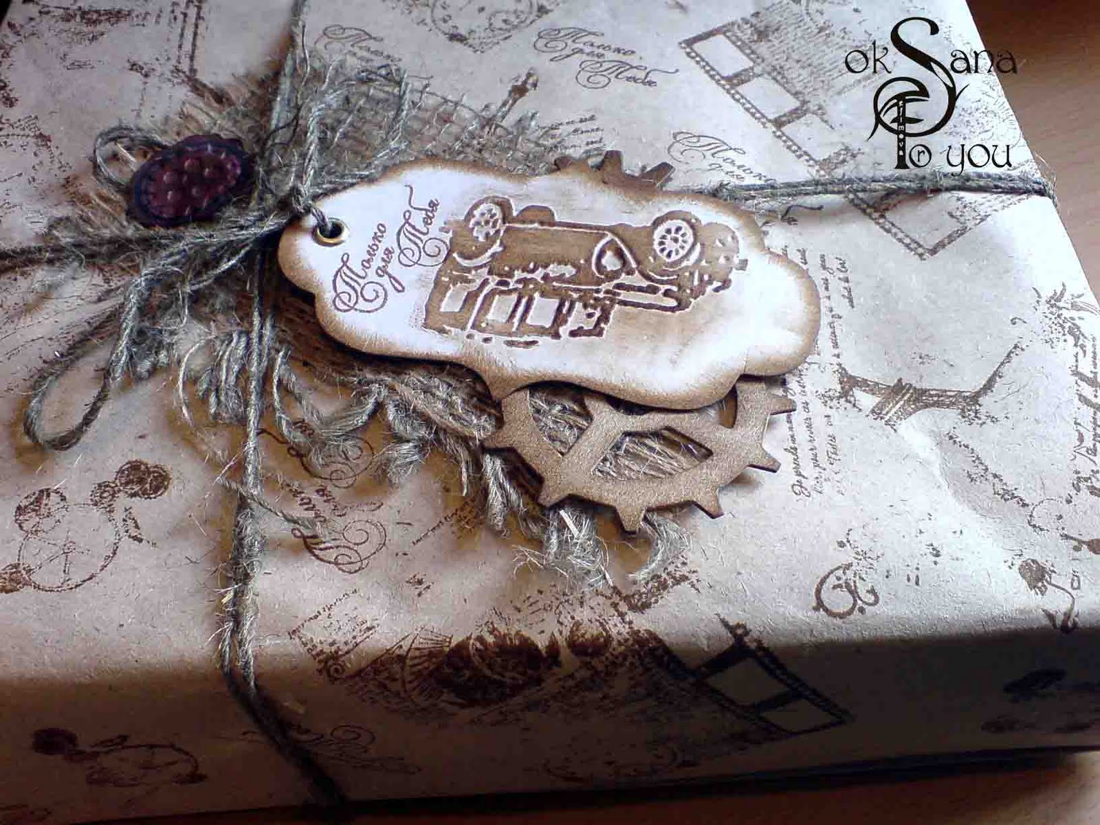 Июль - месяц богатый на всякие праздники - поэтому я в цейтноте :))) Вот на днях слепила упаковку для подарков - материалы обыкновенная бумага - состаренная и отштампованная вручную и тэги для украшения. Очень мужские :)))