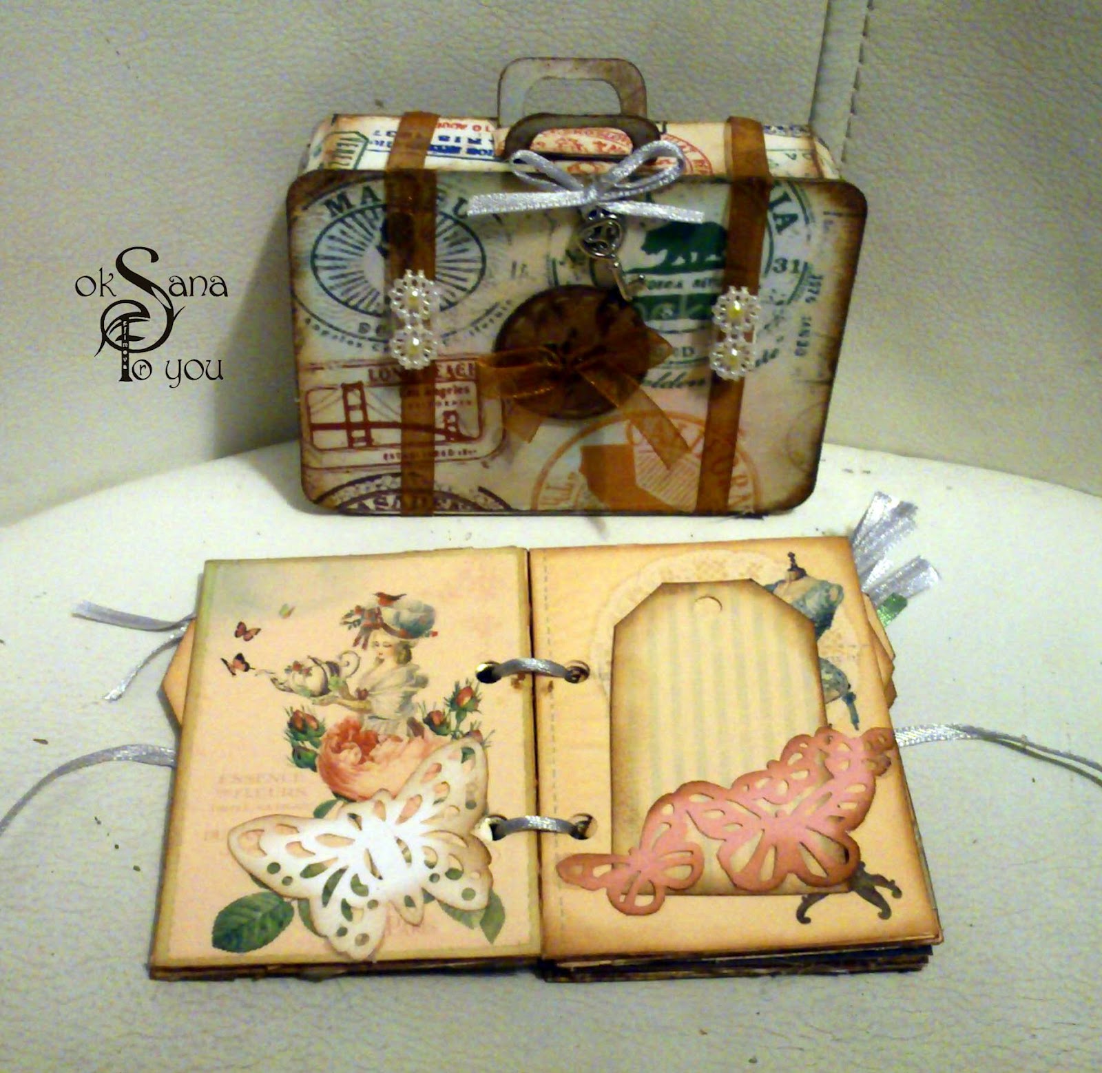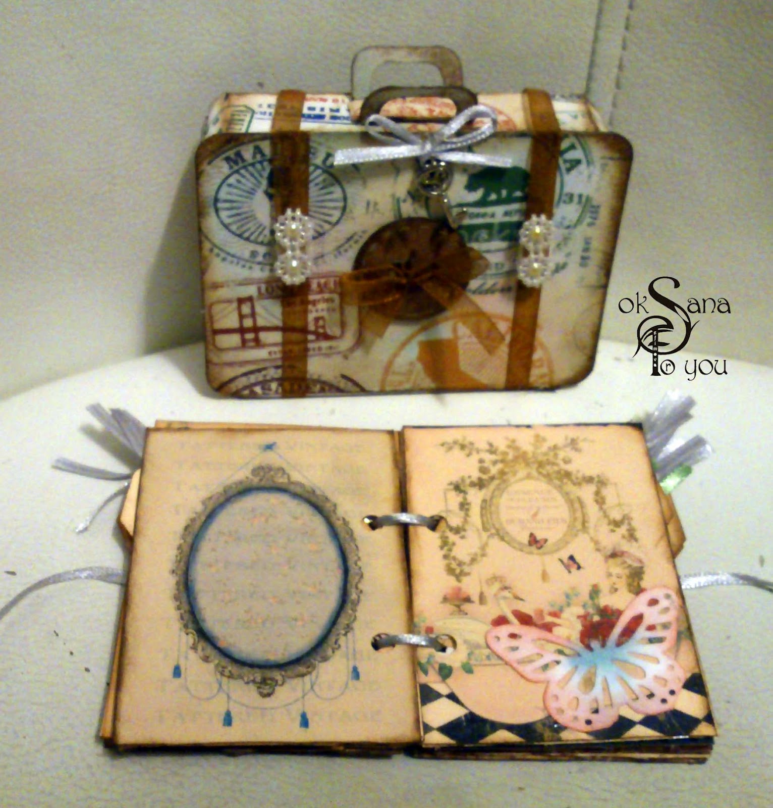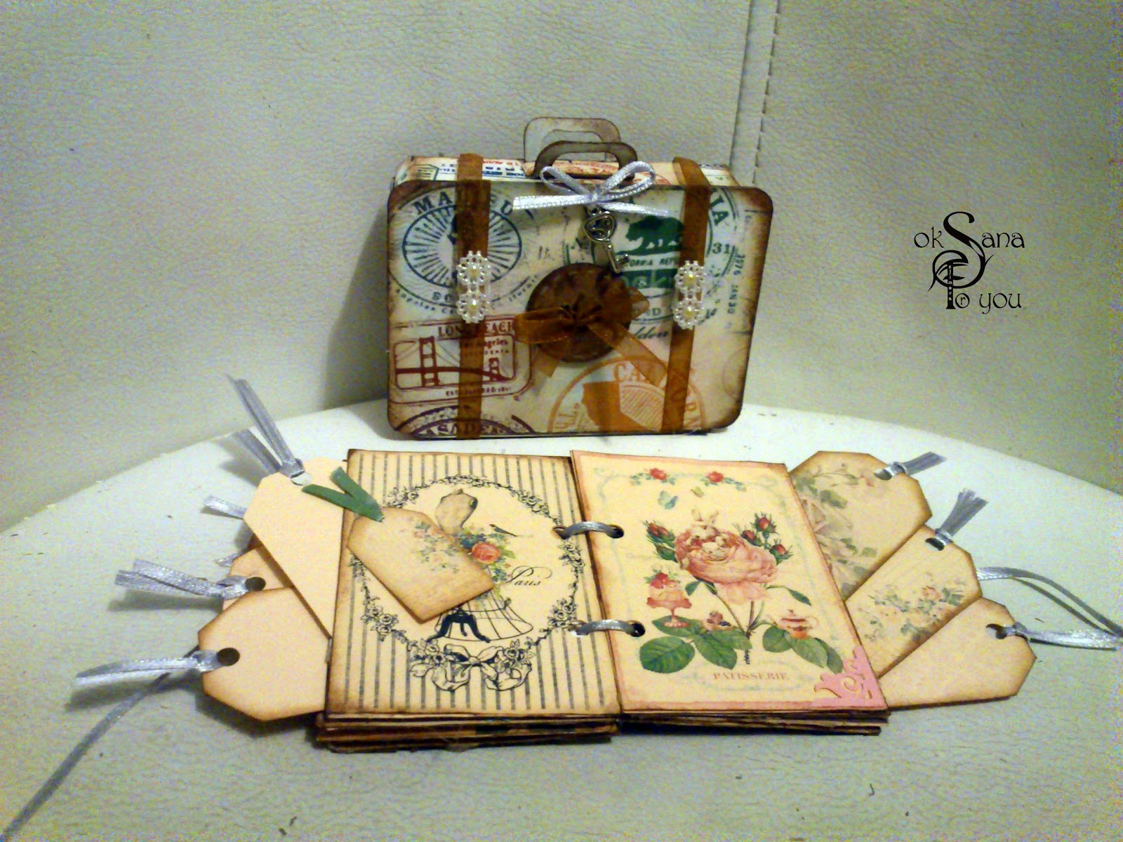 Bag, Suitcase & mini, то есть Винтажный чемодан с мини-альбомом. А знаменитый потому - что пользуется у меня этот комплект ооочень большим успехом в плане заказов - так что кто ещё не стал в очередь на заказ- можете это сделать :)