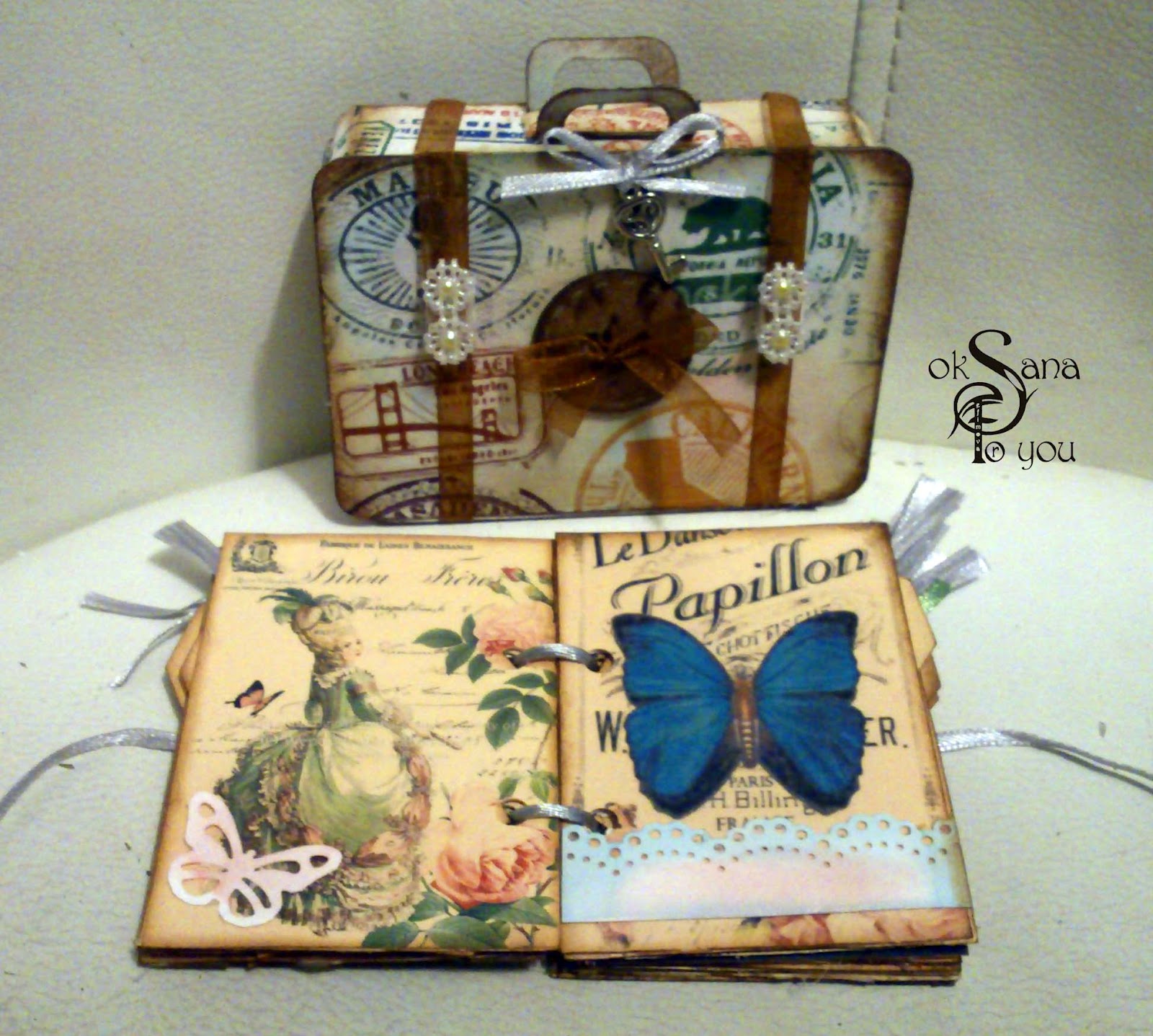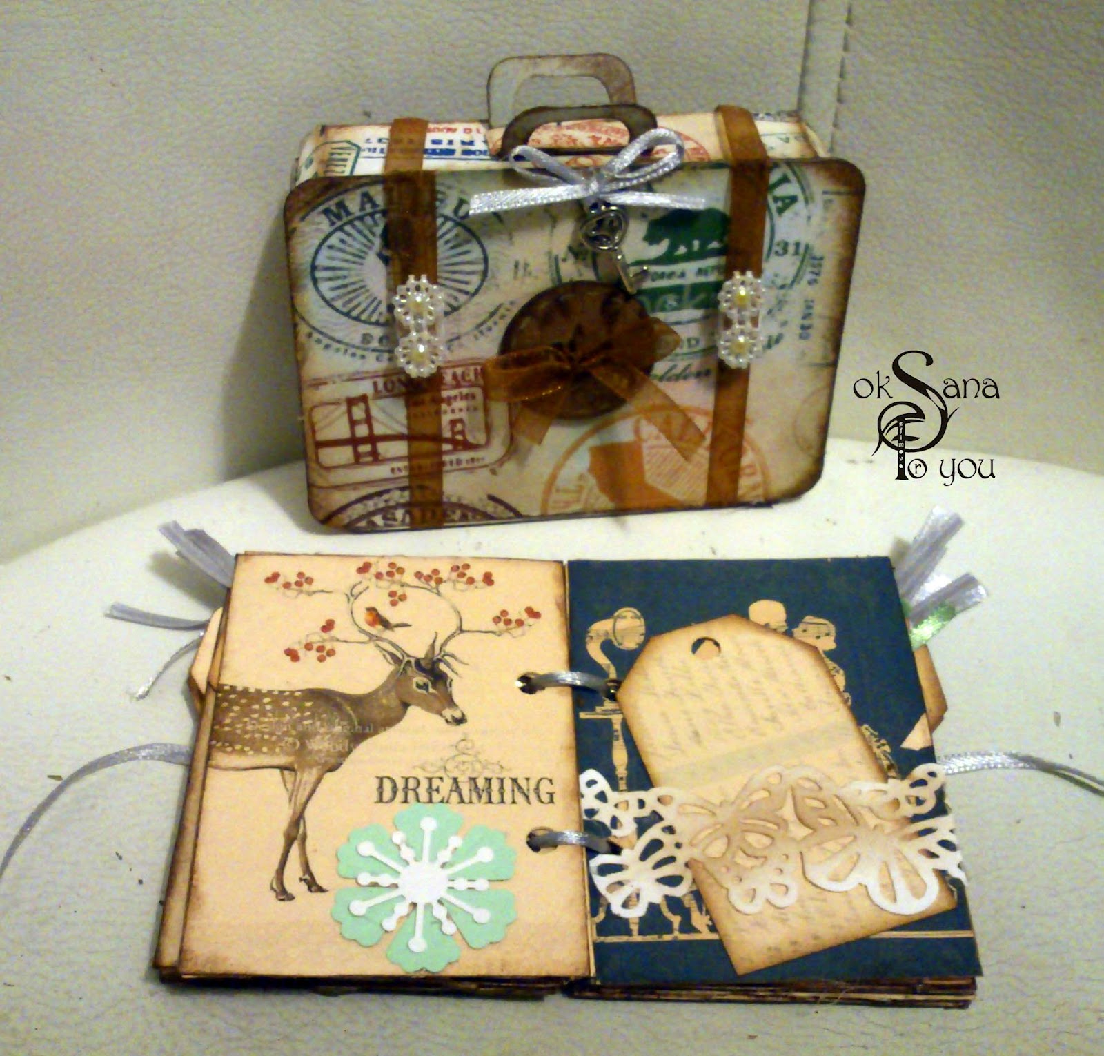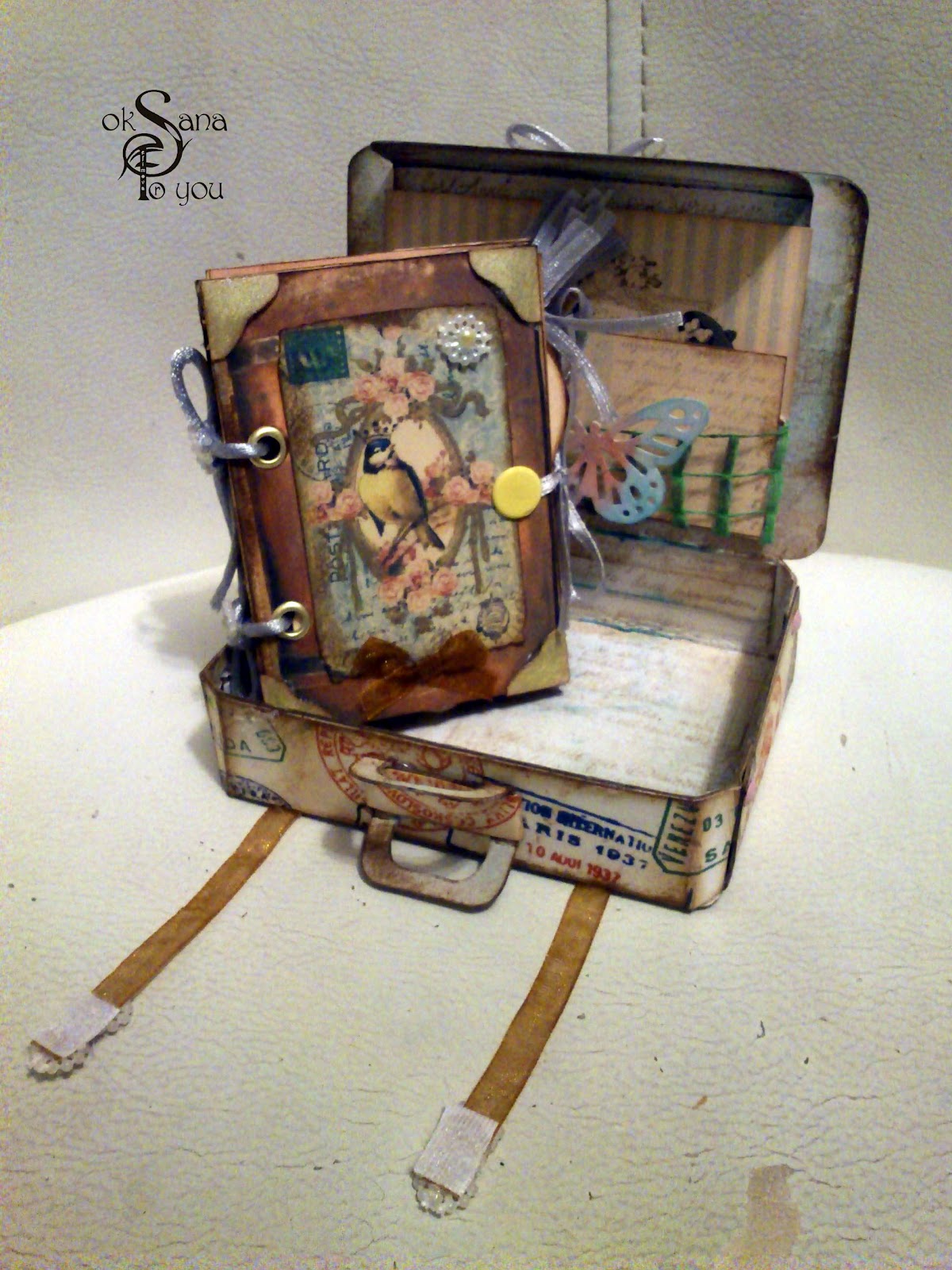 Bag, Suitcase & mini, то есть Винтажный чемодан с мини-альбомом. А знаменитый потому - что пользуется у меня этот комплект ооочень большим успехом в плане заказов - так что кто ещё не стал в очередь на заказ- можете это сделать :)