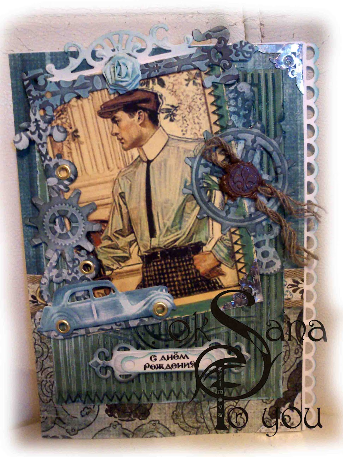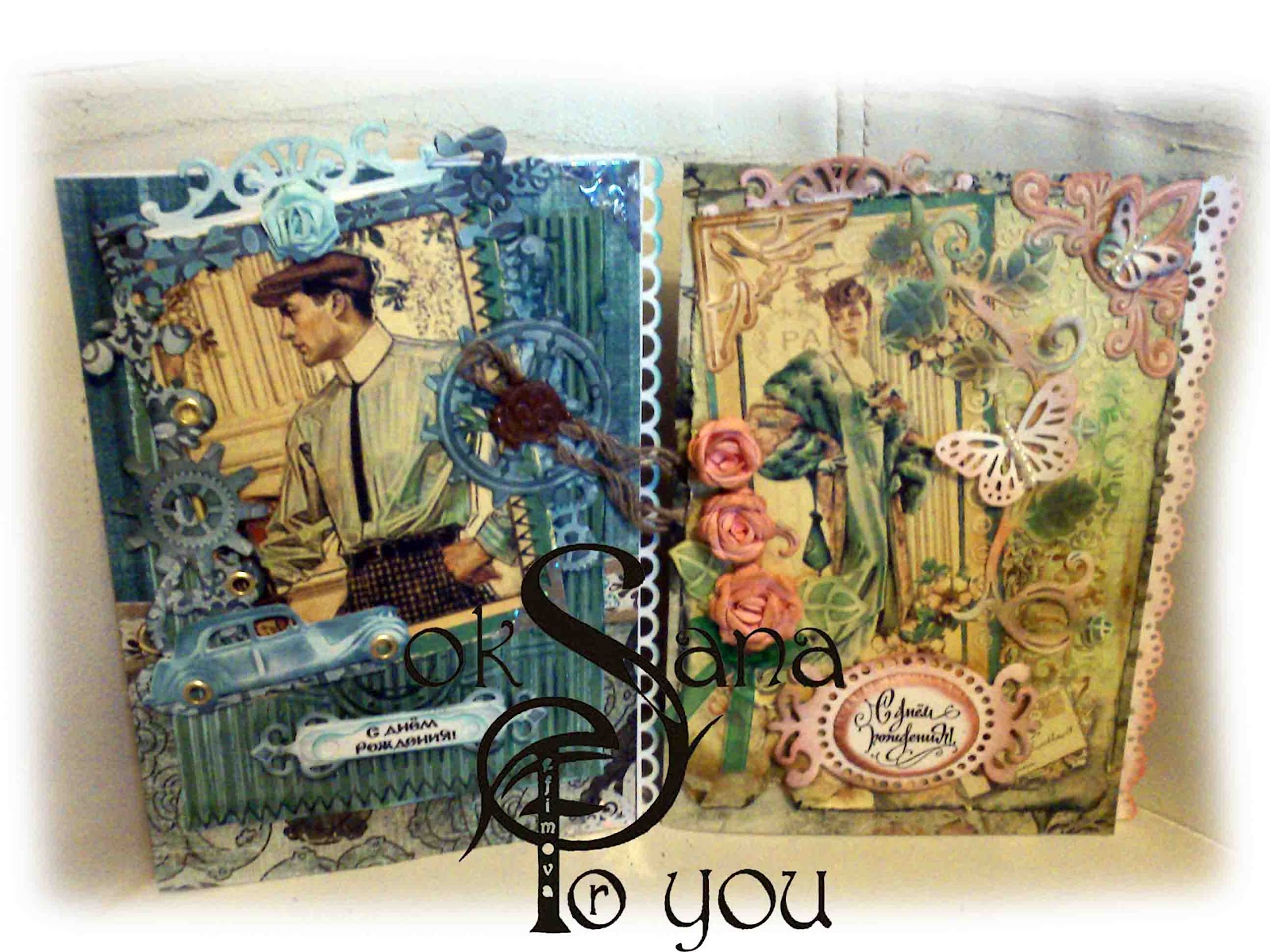 Придерживаясь этого же скетча я сделала два образца открыток - мужской и женский вариант: