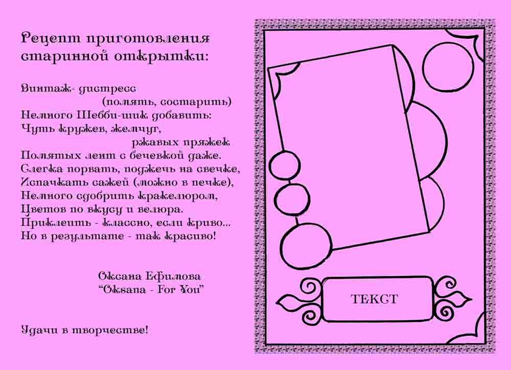 Каждый получил свою карточку участника со скетчем и моим фирменным рецептом приготовления старинной открытки: