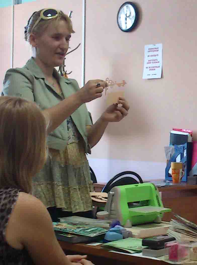 На мастер-классе участники познакомились с целым рядом инструментов для создания открыток: Машинкой для вырубки и тиснения, ножами разных фирм и производителей, широким спектром папок для тиснения - в том числе и последними новинками этого года.