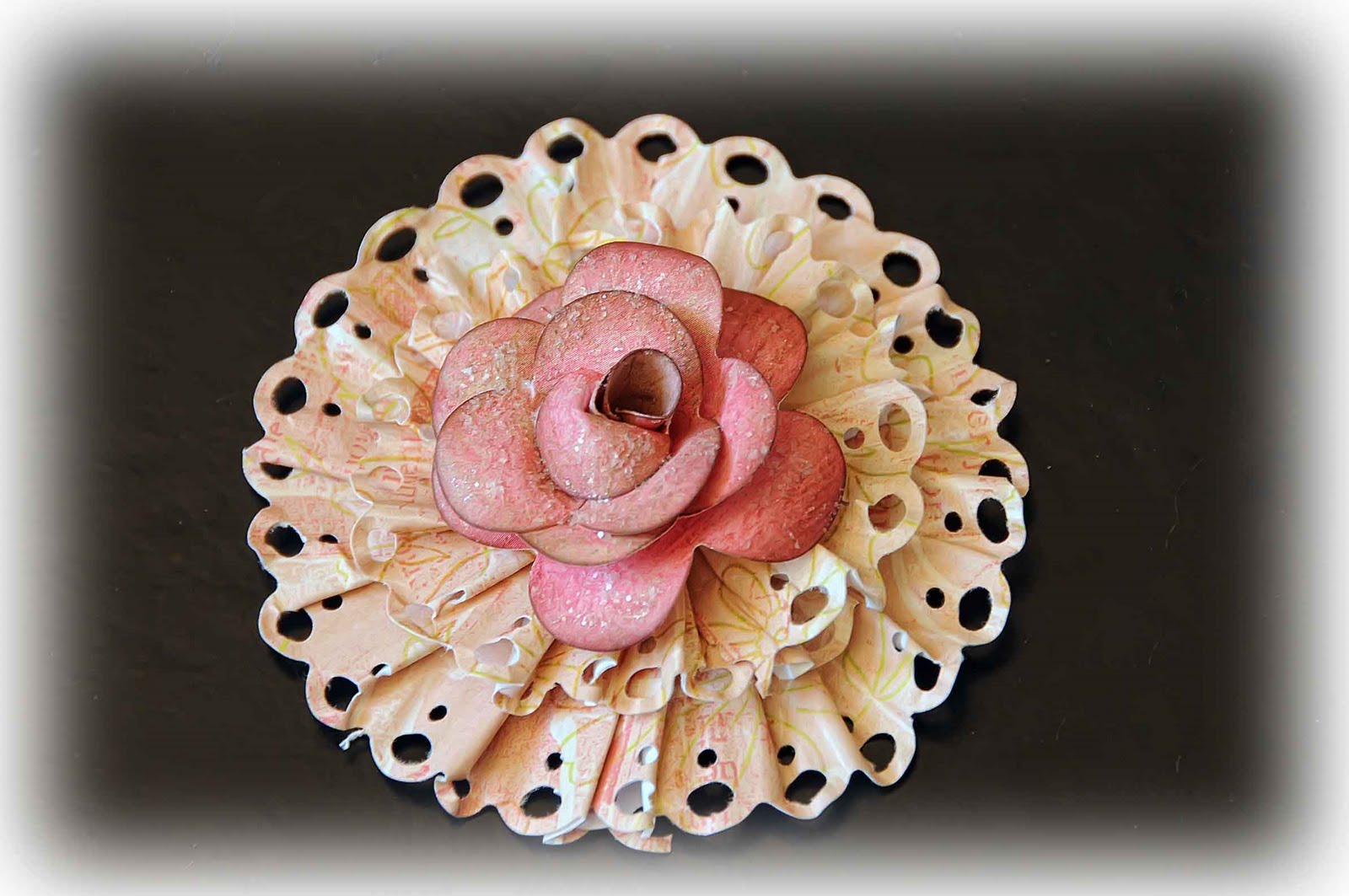 Add a flower center, buttons, smaller flowers. beads, glittered centers. What ever you want. Make it your own. The rose in the center of flower 2 was made using the tutorial I just finished, that will be in the tutorial section soon. You can ink, stickle glitter, crackle or anything your creative swirly heart desires to make the flower your own...