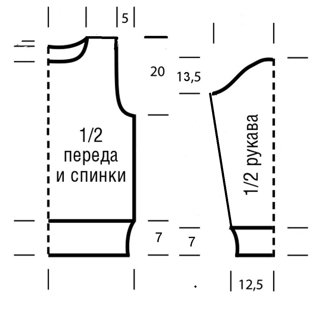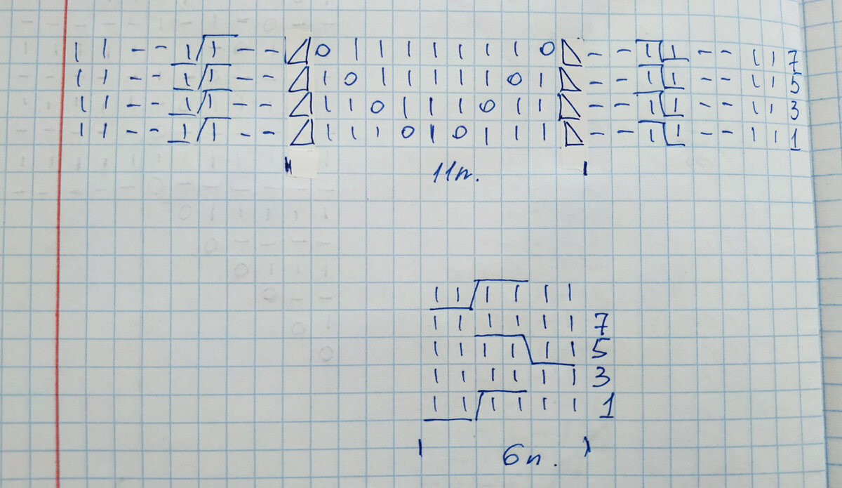 Далее рассказываю, как по плотности и выкройке составить индивидуальное описание на свой размер. Рисую взаимное расположение узоров.