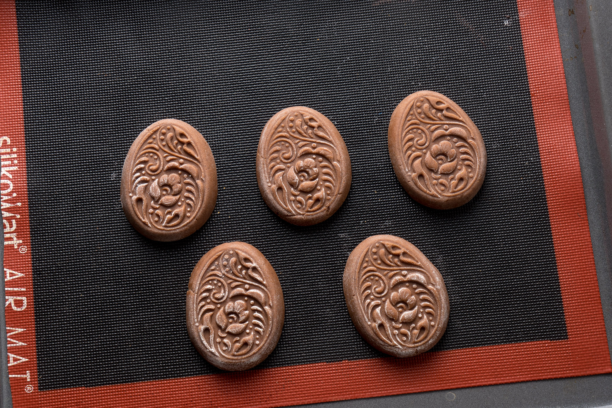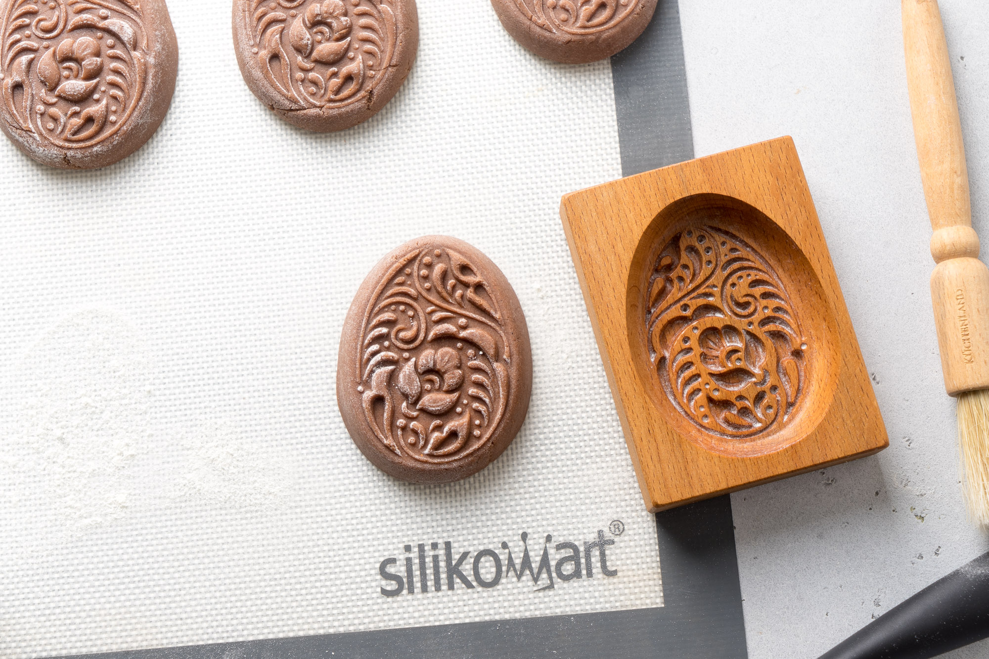 Переворачиваем форму и немного постукиваем её о ладошку, чтобы пряник вышел. Если вы хорошо подпылили мукой форму — всё будет хорошо.