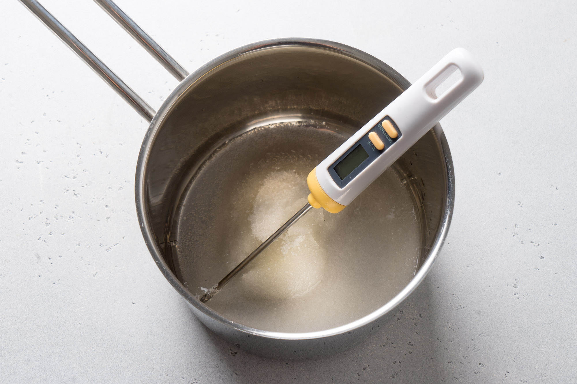Доведите до кипения воду (50 г) и сахар (120 г). Если хотите получить более карамельный цвет пряников и вкус, используйте