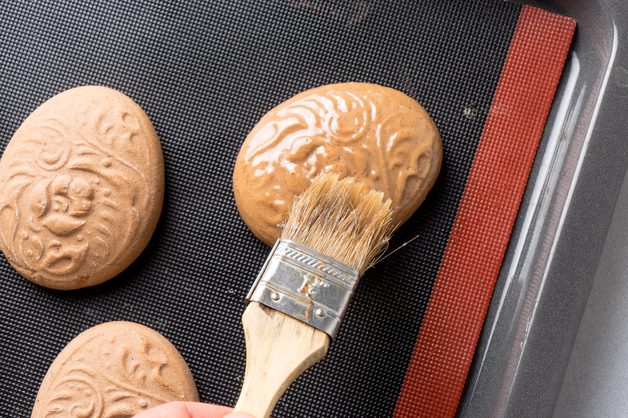 Как только снимете сироп с плиты, сразу же широкой кисточкой пройдитесь по пряникам. Слой должен быть очень тонким, поэтому спешите и не набирайте слишком много сиропа на кисточку.