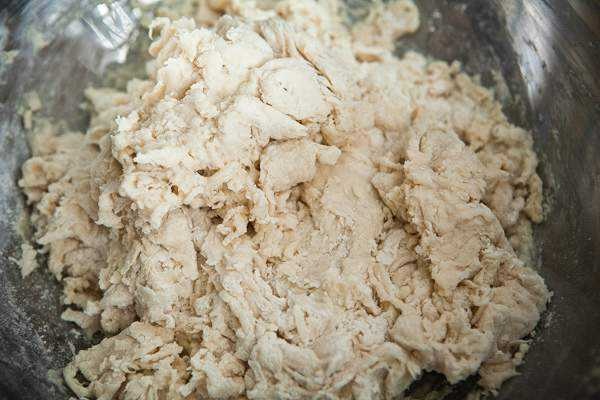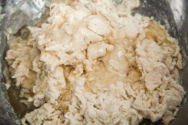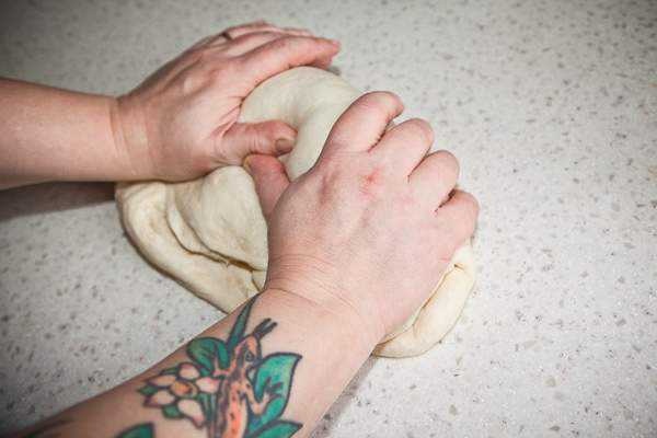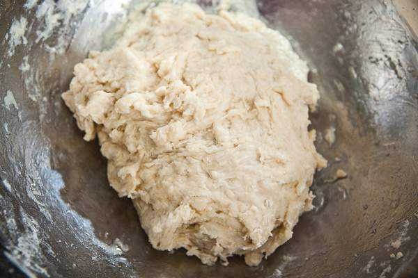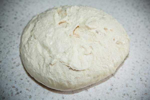 Домесите тесто до того момента, как оно соберет всю муку и все масло. До идеальной гладкости его сначала вымешивать не нужно. Тесту потребуется 20 минут, чтобы набухла клейковина.