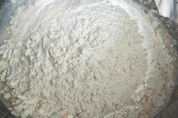 Всыпьте дрожжи. Чуть-чуть смочите дрожжи, не размешивая.