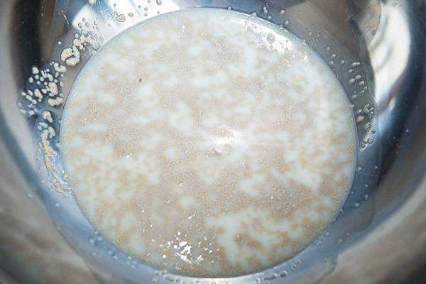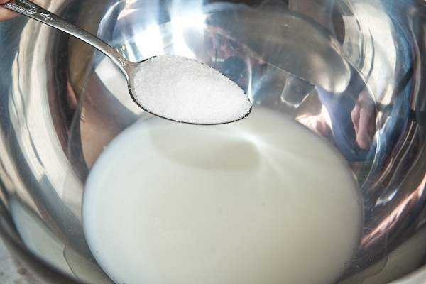 Нагрейте молоко до 30 градусов и вылейте в миску.