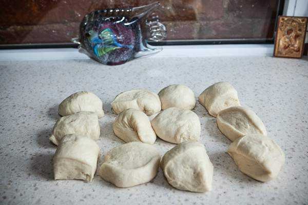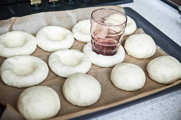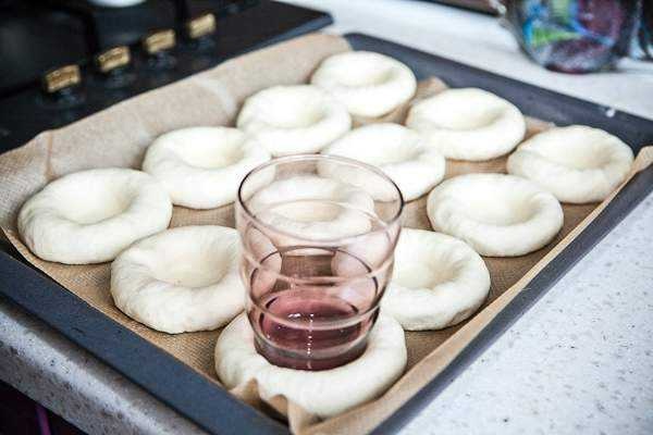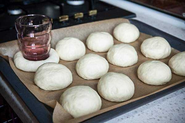После того как шарики теста расстоятся, необходимо сделать углубления под начинку.