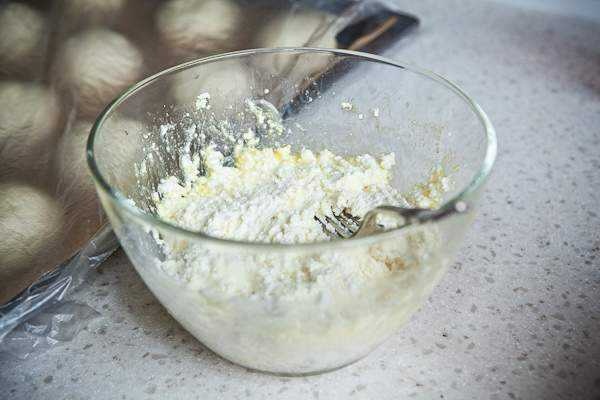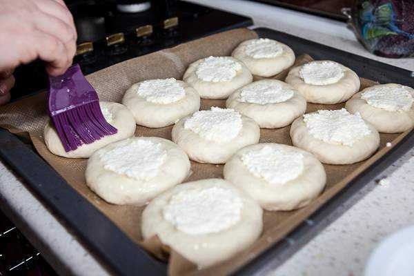Важно смазывать не начинку, а именно тесто по краям ватрушки.