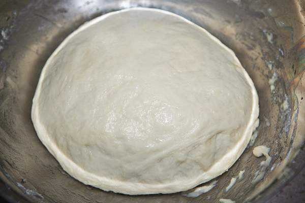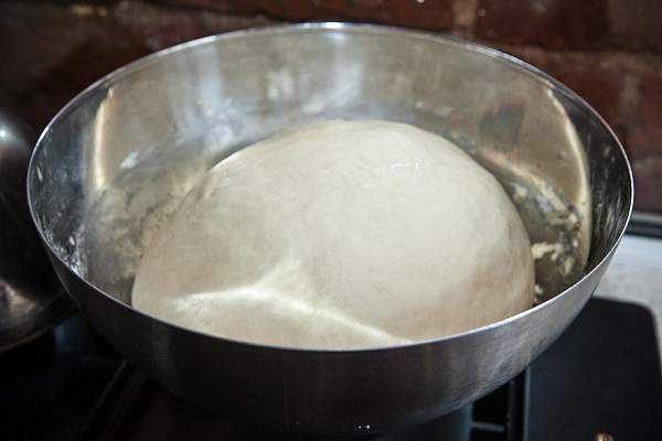 Опять накройте пленкой и оставьте ещё на 30-40 минут для окончательного подьема.Готовое тесто увеличится от первоначального объема в три раза.