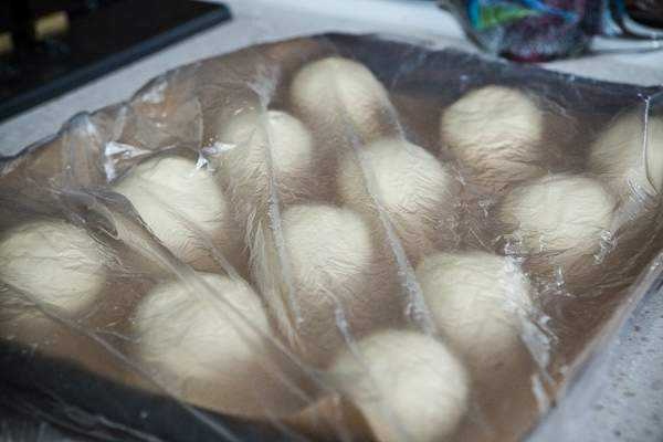 Накройте противень пленкой и оставьте для окончательной расстойки на 25-30 минут.