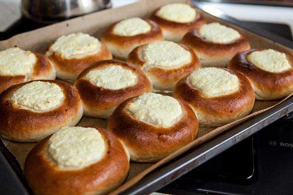 Готовые ватрушки снимайте с противня и подавайте к столу.