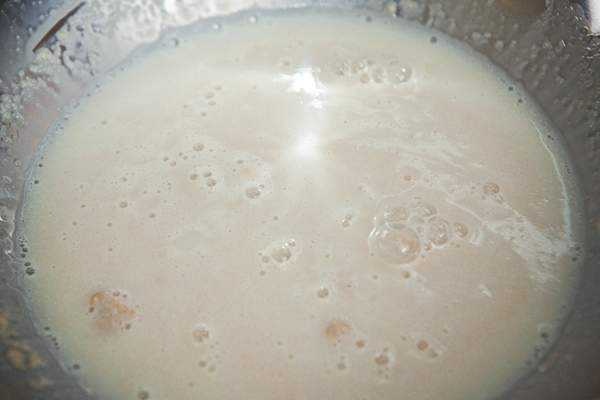 После того как дрожжи начнут расти – появится небольшая пенная шапка на поверхности – добавьте одну чайную ложку соли.