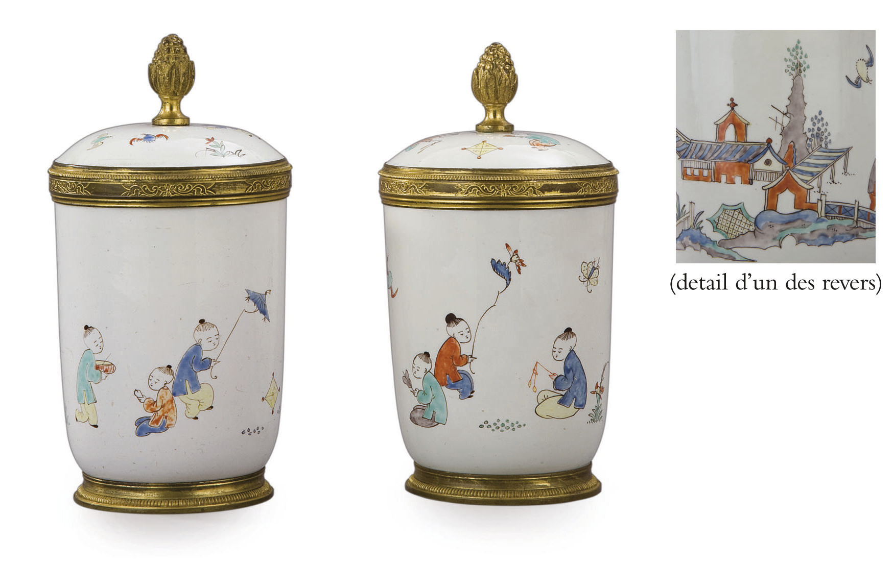 ÏÀÐÀ ÊÈÒÀÉÑÊÈÕ ÔÀÐÔÎÐÎÂÛÕ ÁÀÍÎ×ÅÊ È ÊÐÛØÅÊ Ñ ÊÐÅÏËÅÍÈÅÌ ORMOLU ÊÎÍÅÖ 19-ÃÎ / ÍÀ×ÀËÎ 20-ÃÎ ÂÅÊÀ