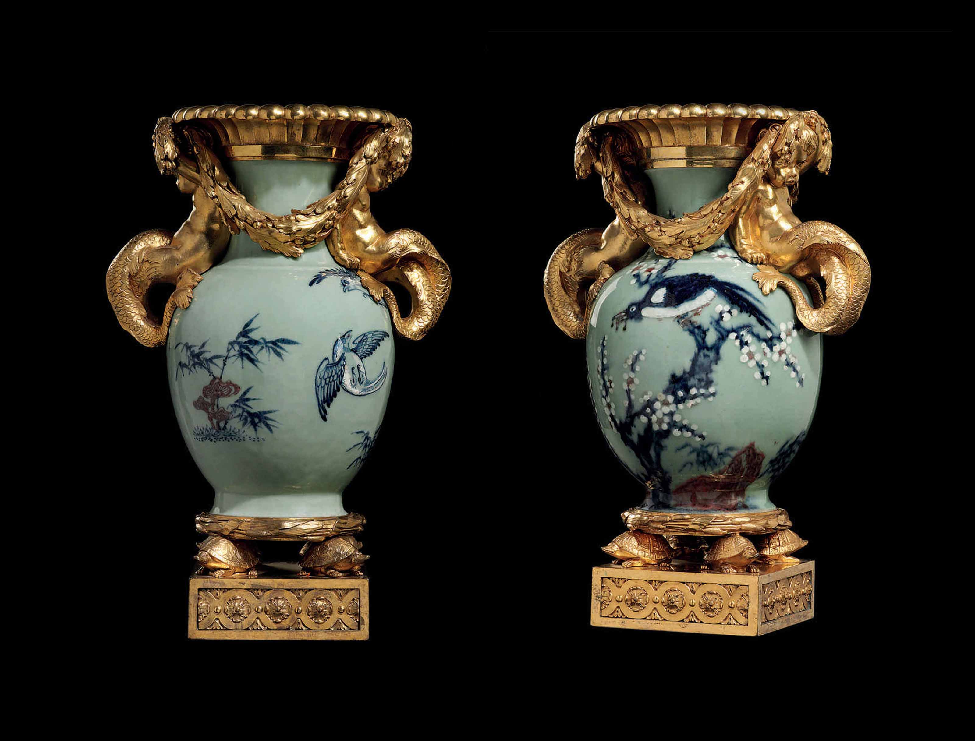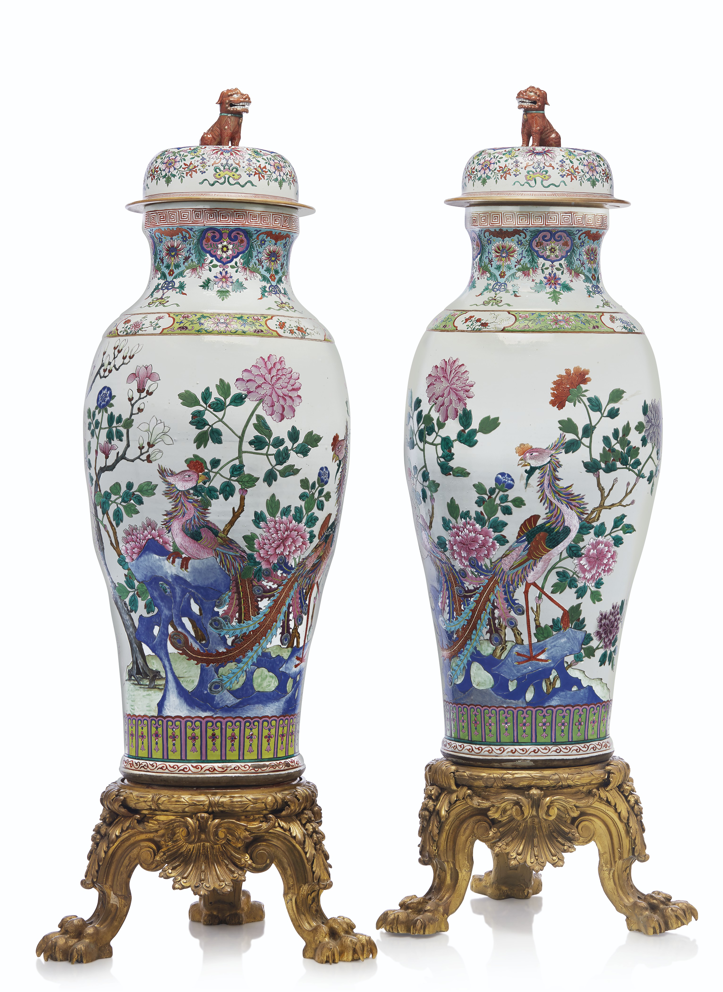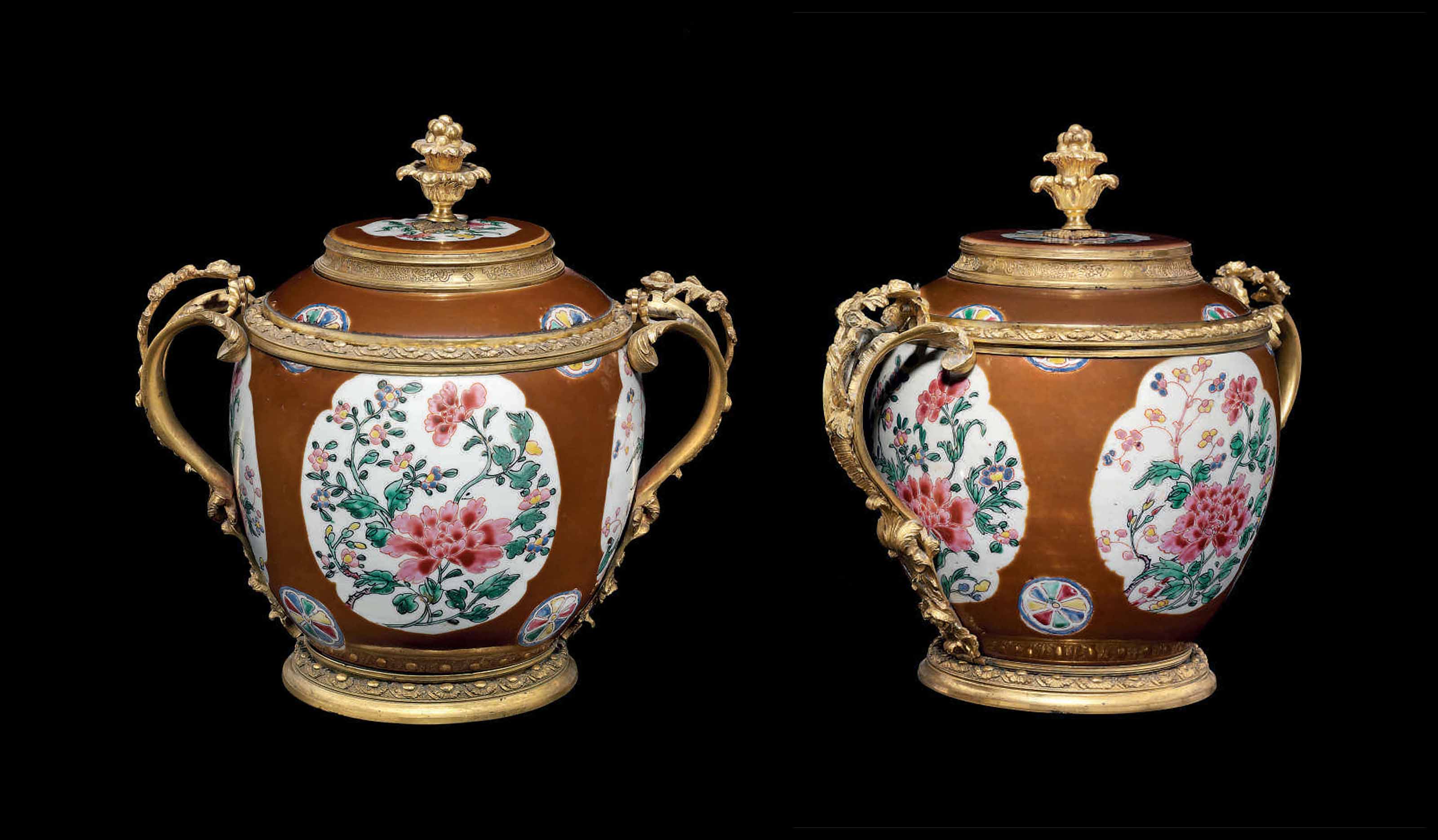 ÏÀÐÀ ÊÈÒÀÉÑÊÈÕ ÔÀÌÈËÜÍÛÕ ÂÀÇ Ñ ÐÎÇÀÌÈ È ÊÐÛØÅÊ Â ÑÒÈËÅ ËÞÄÎÂÈÊÀ XV ORMOLU Â ÑÒÈËÅ ÎÐÌÎËÓ