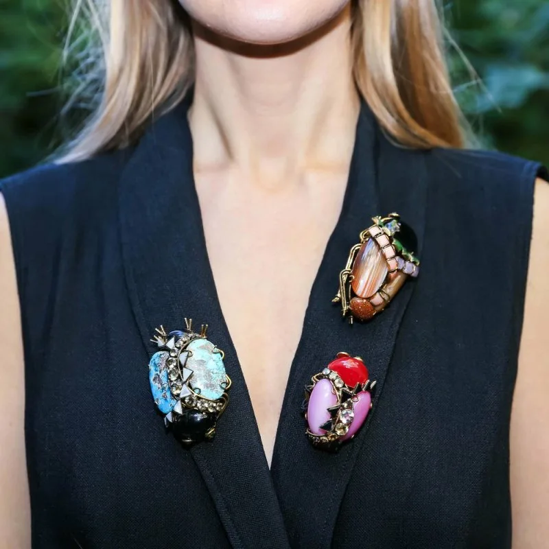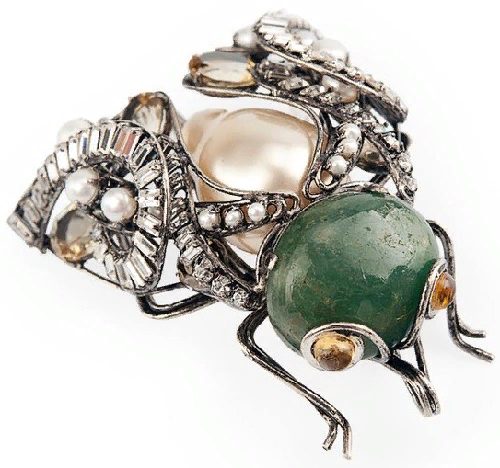 Ирадж Моини талантливо перерабатывает элементы стилей ар- деко и ар- нуво, переосмысливая их заново, соединяя в своих украшениях различные металлы, кварц, жемчуг, изумруды, рубины, лазурит, аметисты. Дизайнер буквально околдовывает своими смелыми в исполнении украшениями.