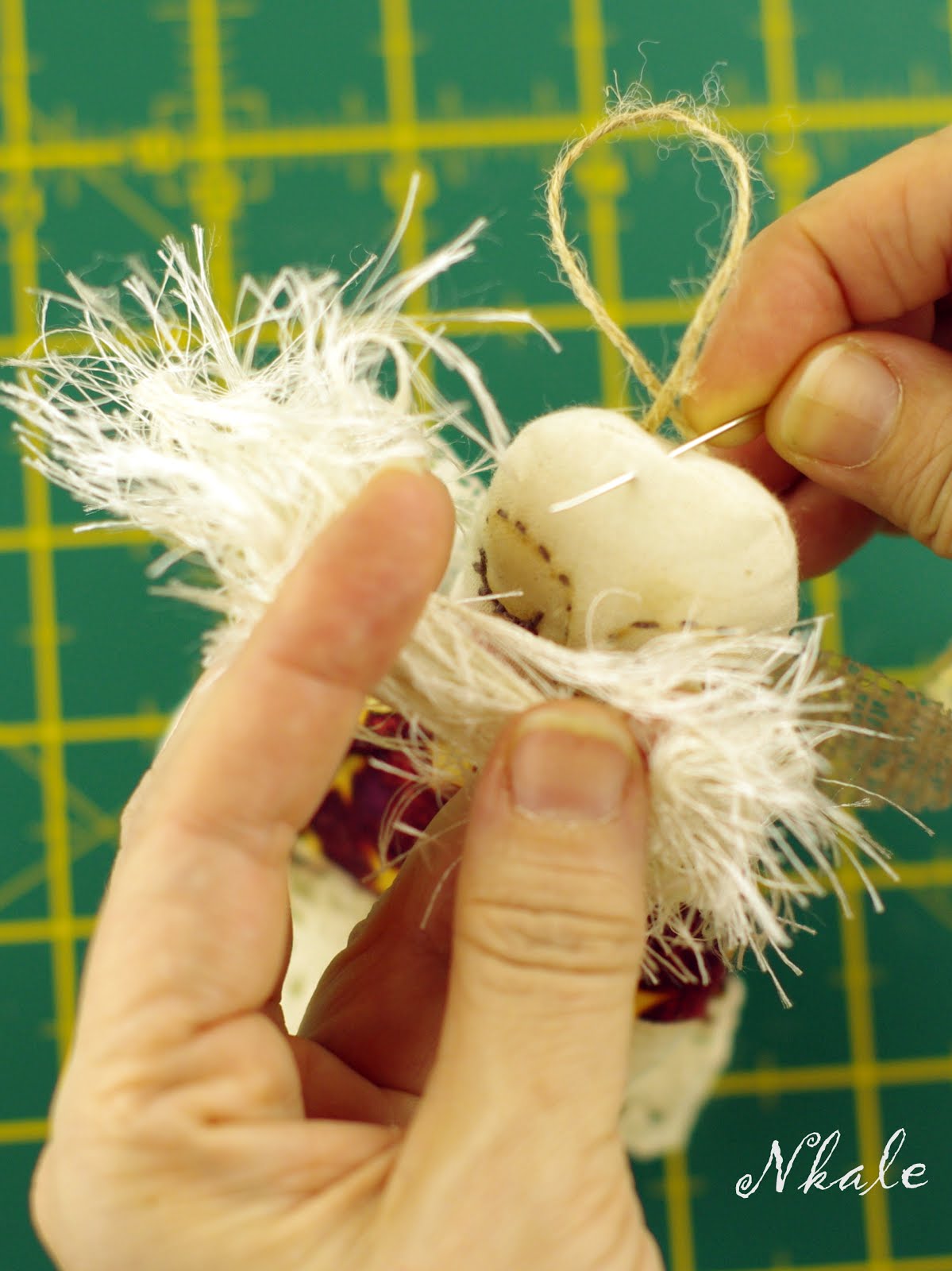 Пришиваем пучок пряжи за середину к макушке Ангела