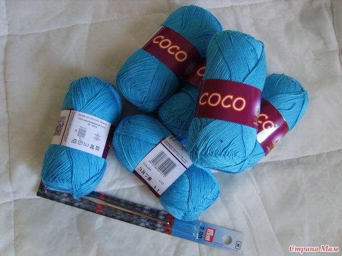 Я буду вязать из "Сосо", 240 м/50 гр, крючок №2, размер 42