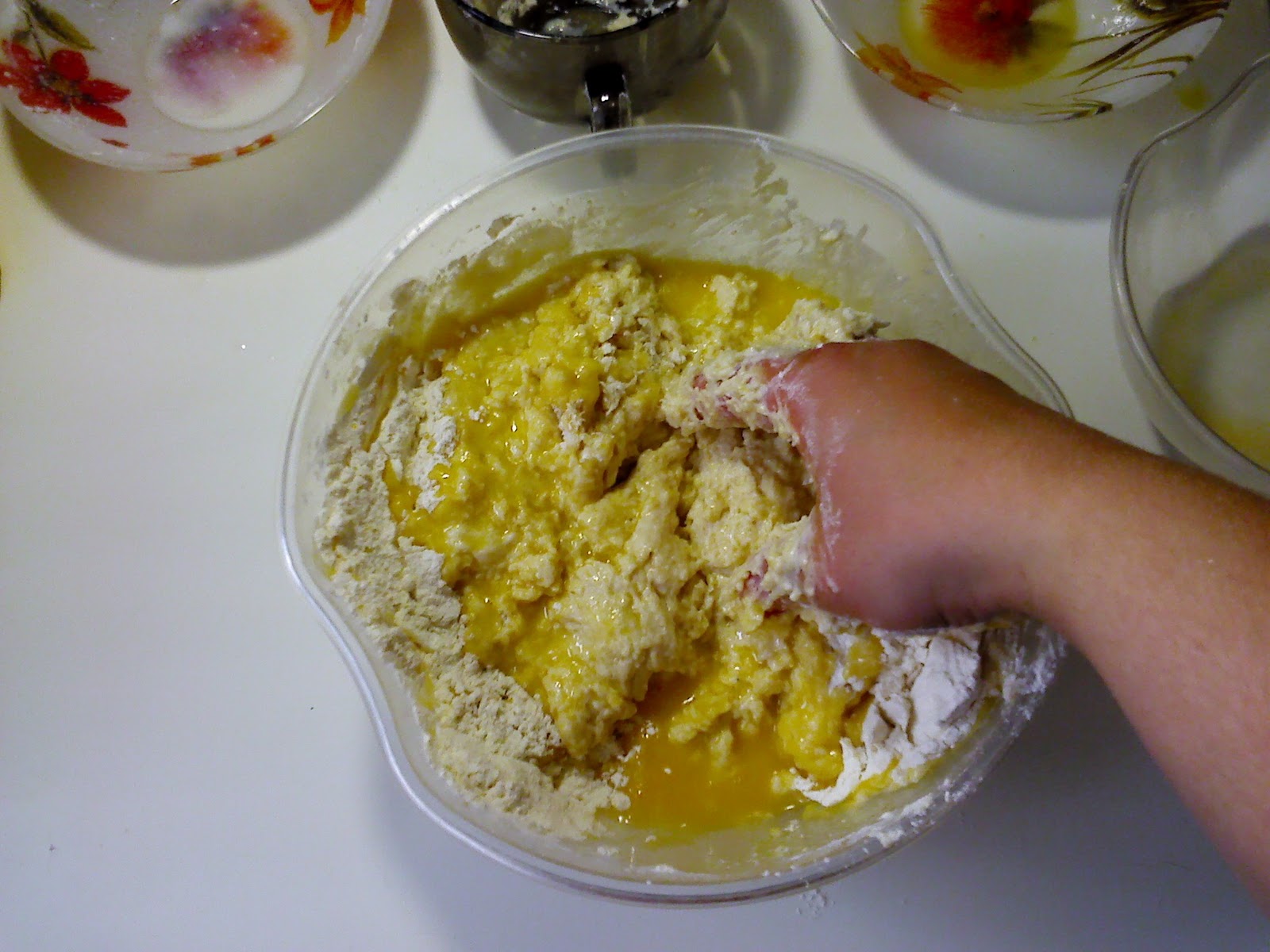 И ручками начинаем замешивать тесто: