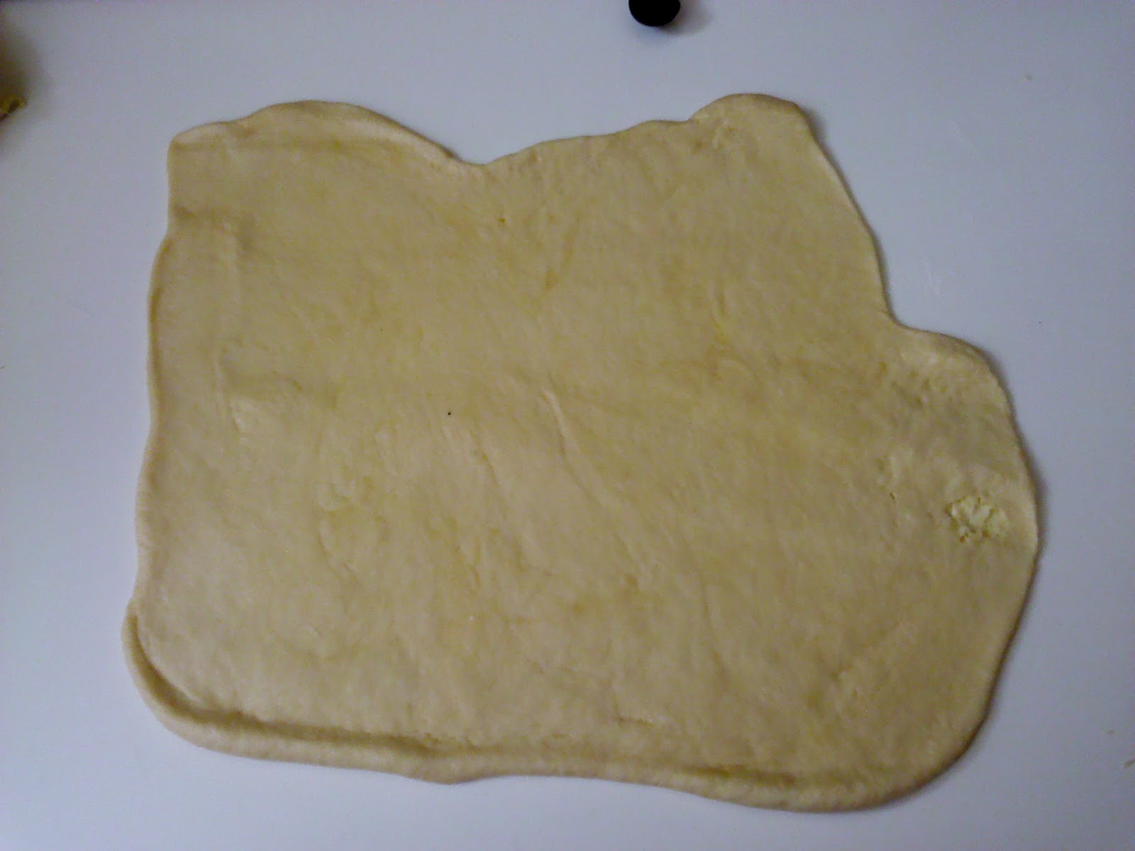 Итак, раскатываем пласт теста, толщиной 0,3-0,5 см, примерно намечаем окружность (у меня с помощью крупной тарелки)