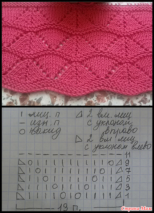 Низ изделия связан по схеме (для рукавов тот же раппорт, но на 11 петлях)