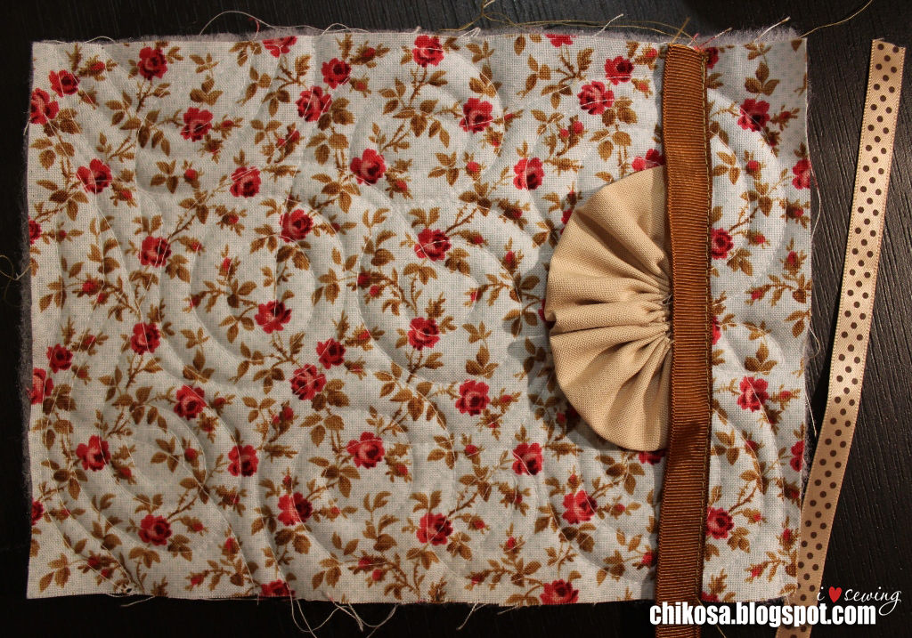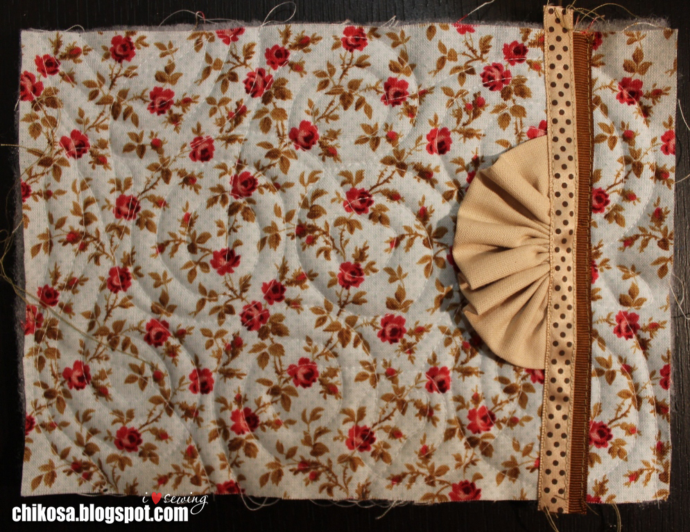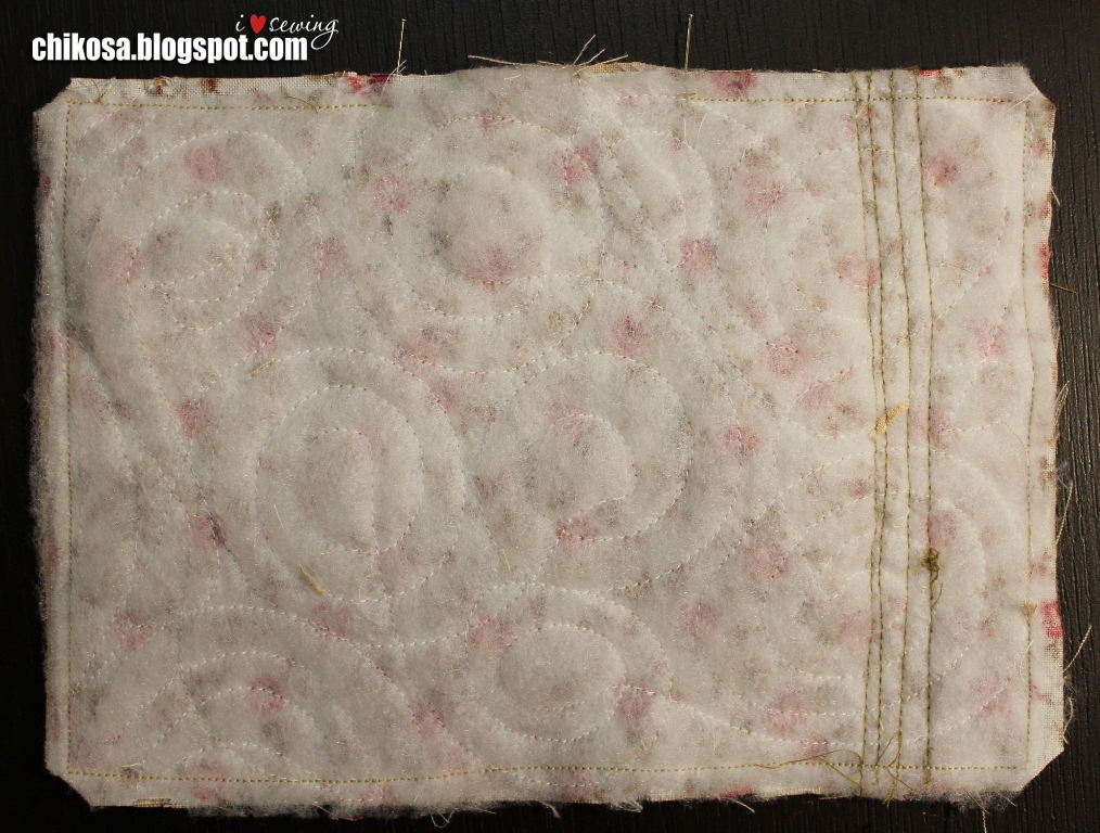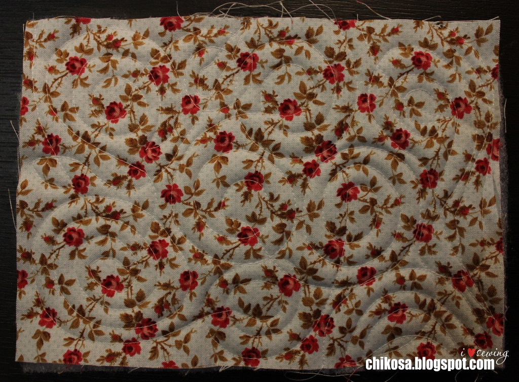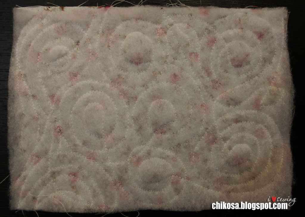 Простегиваем в хаотичном порядке. Я решила сделать закрученными кругами. В зависимости от машинки делаем настройки. На моей Janome MC 5200 ставлю прижим лапки 1, натяжение верхней нити 2. Игла универсальная organ 70. Нитки подойдут любые, я использую ideal, bestex, dor-tak, euron.