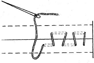 Начинаем отстрочку с середины обложки сбоку, оставив длинные нити (!), не делая закрепки. Чтобы нити не запутались в начале шитья, придержите их рукой за лапкой: