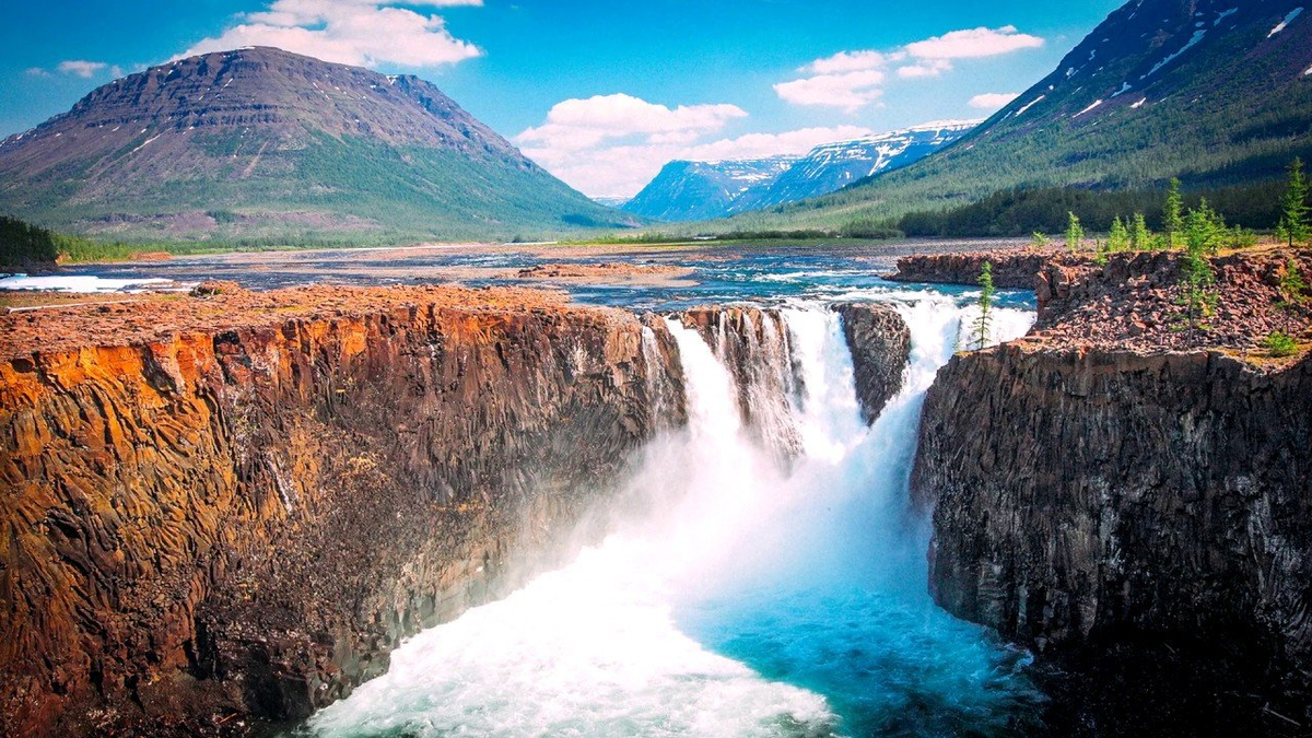 Громадное Плато Путорана — это удаленное и красивое место, признанное памятником Всемирного наследия ЮНЕСКО. Еще на плато есть интересные озера, “безвершинные” горы и водопад Кандинский, который является высочайшим водопадом в нашей стране. Вода с Кандинского падает с высоты в 108 метров.