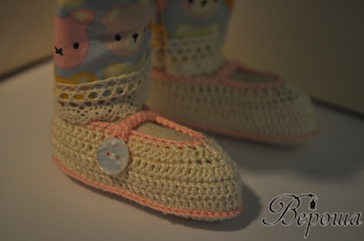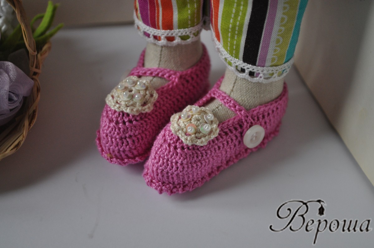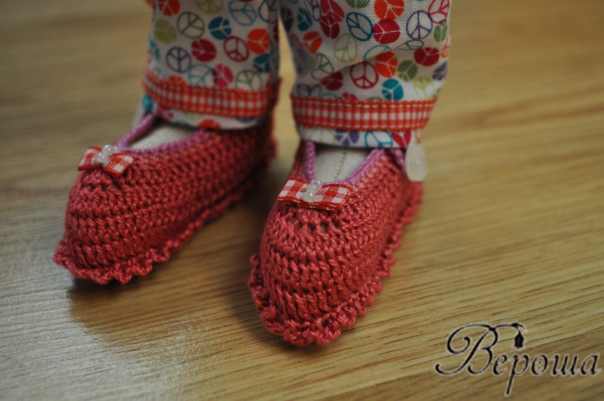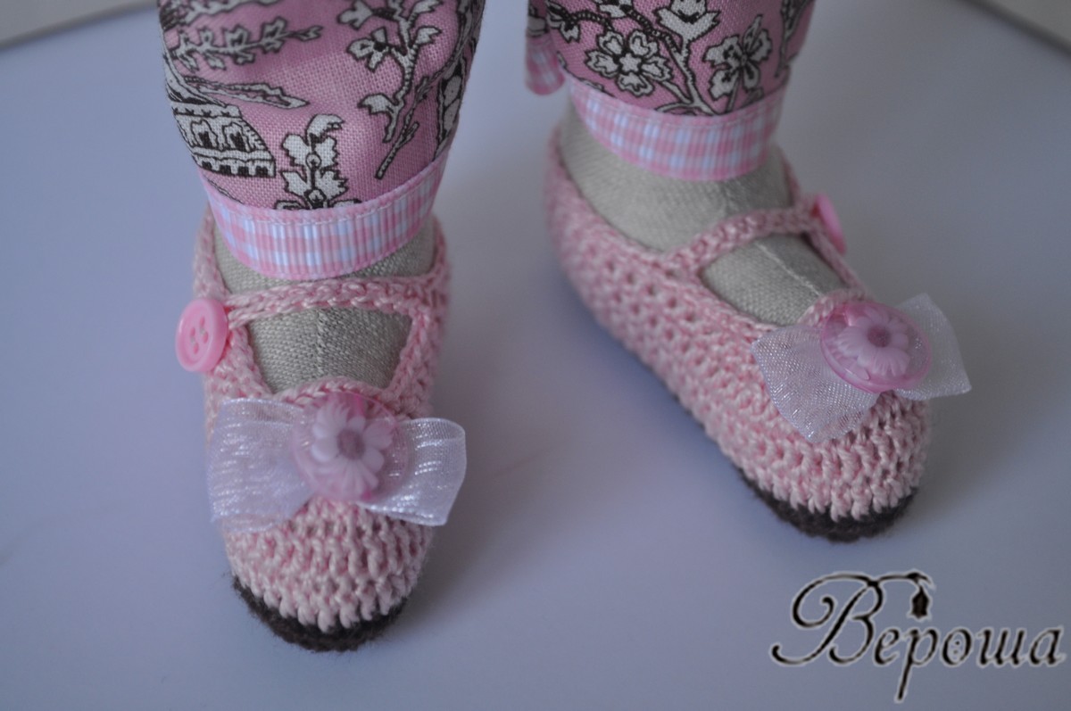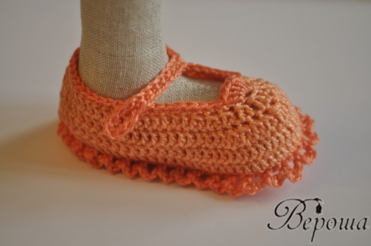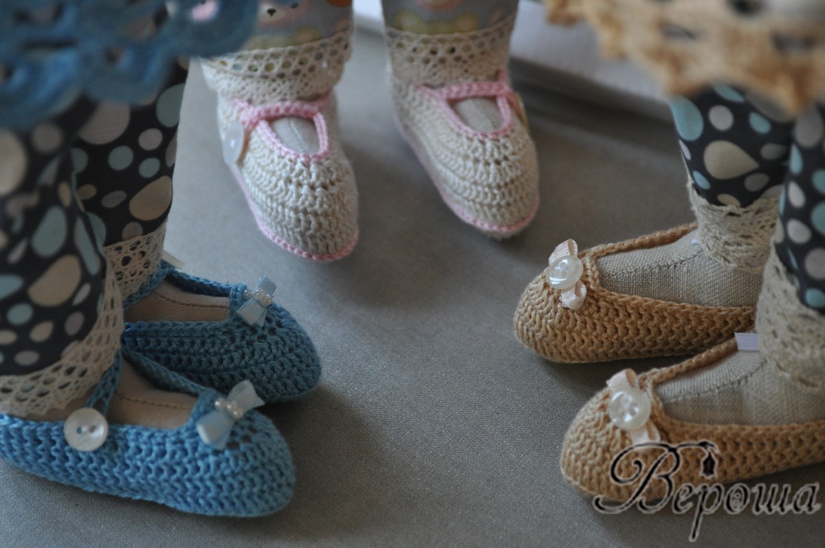 Идея для этих туфелек взята от пинеток для малышей. Единственное, что нет необходимости, чтобы они растягивались (т.е. трикотажный эффект не нужен и даже нежелателен).