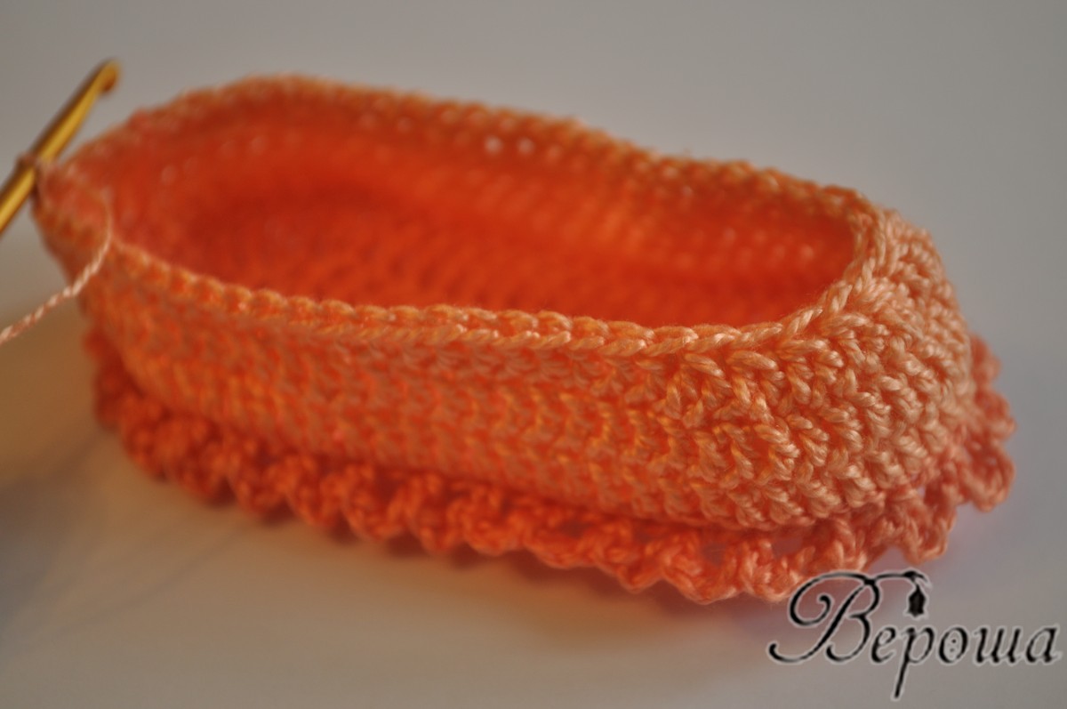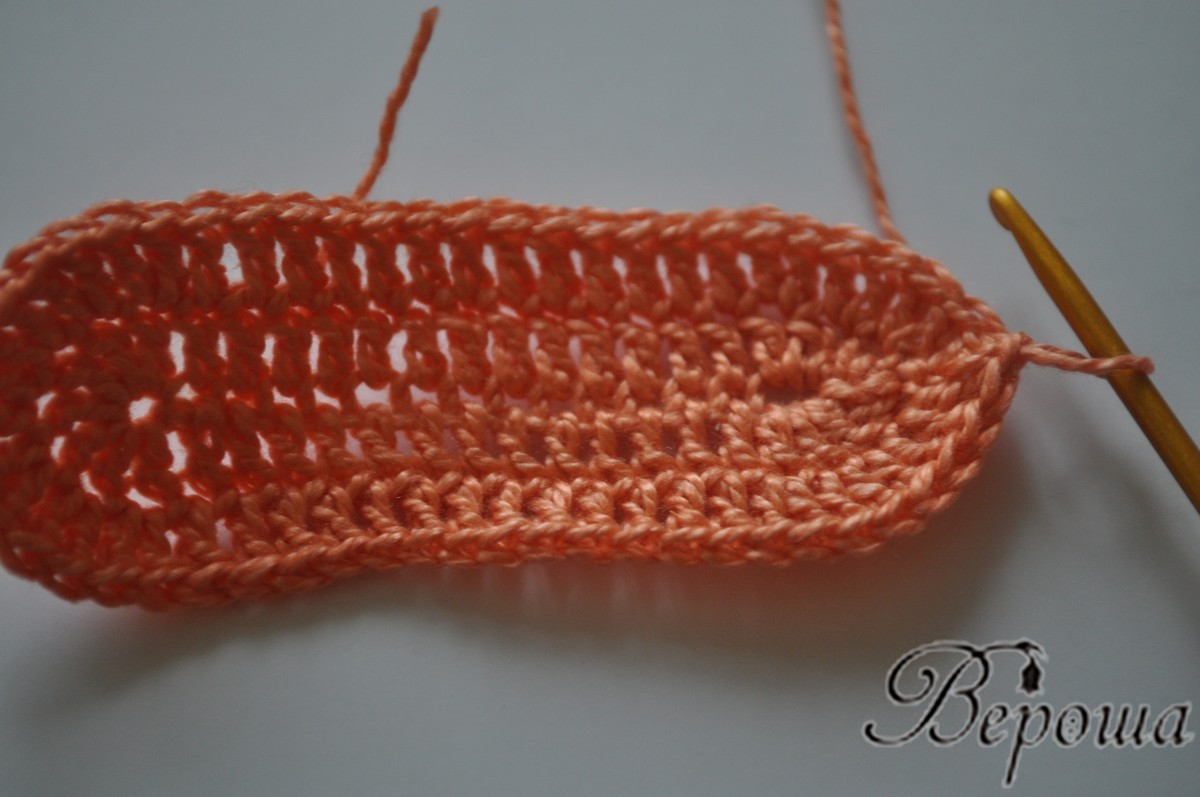 С подошвой мы закончили! Начинаем саму туфлю вязать. Я решила сменить нитку на немного более светлую.