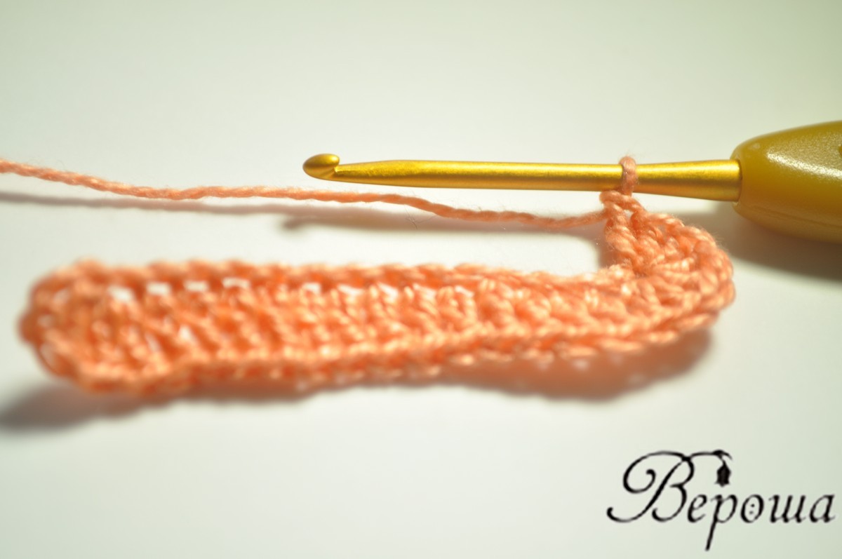 Набираем цепочку из 15 петель. 3 петли подъема.