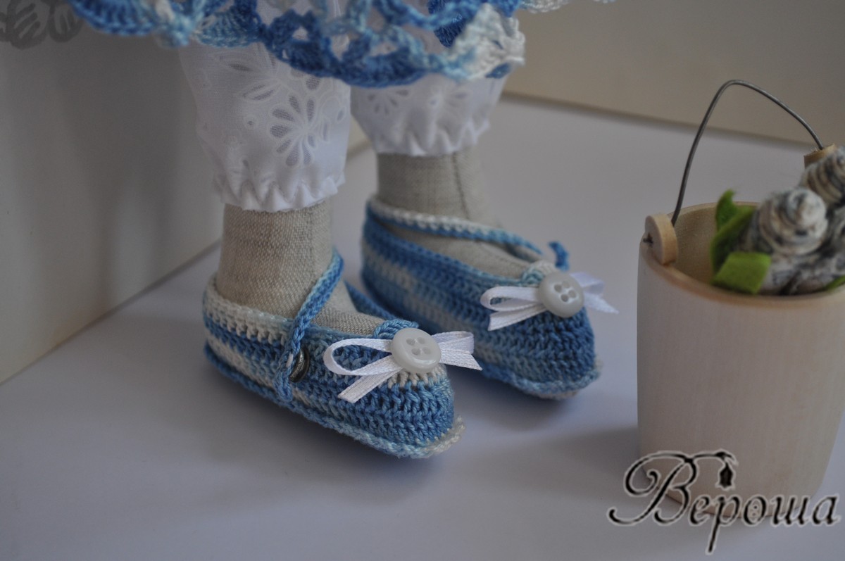 5. Что-то для украшения туфелек. Это могут быть ленты, бантики, бисер, пуговки, бусины и т.п. Только прошу Вас не переборщить! Для такой небольшой куклы много блеска будет во вред, мы и так уже нарушаем стиль тильда, потому как он подразумевает некий минимализм.