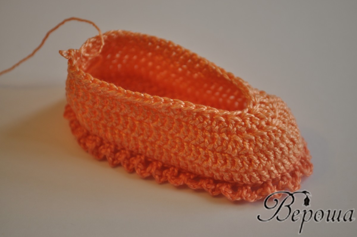 8-ой ряд. Повторяем 7-ой, только не делаем убавок сзади туфельки.