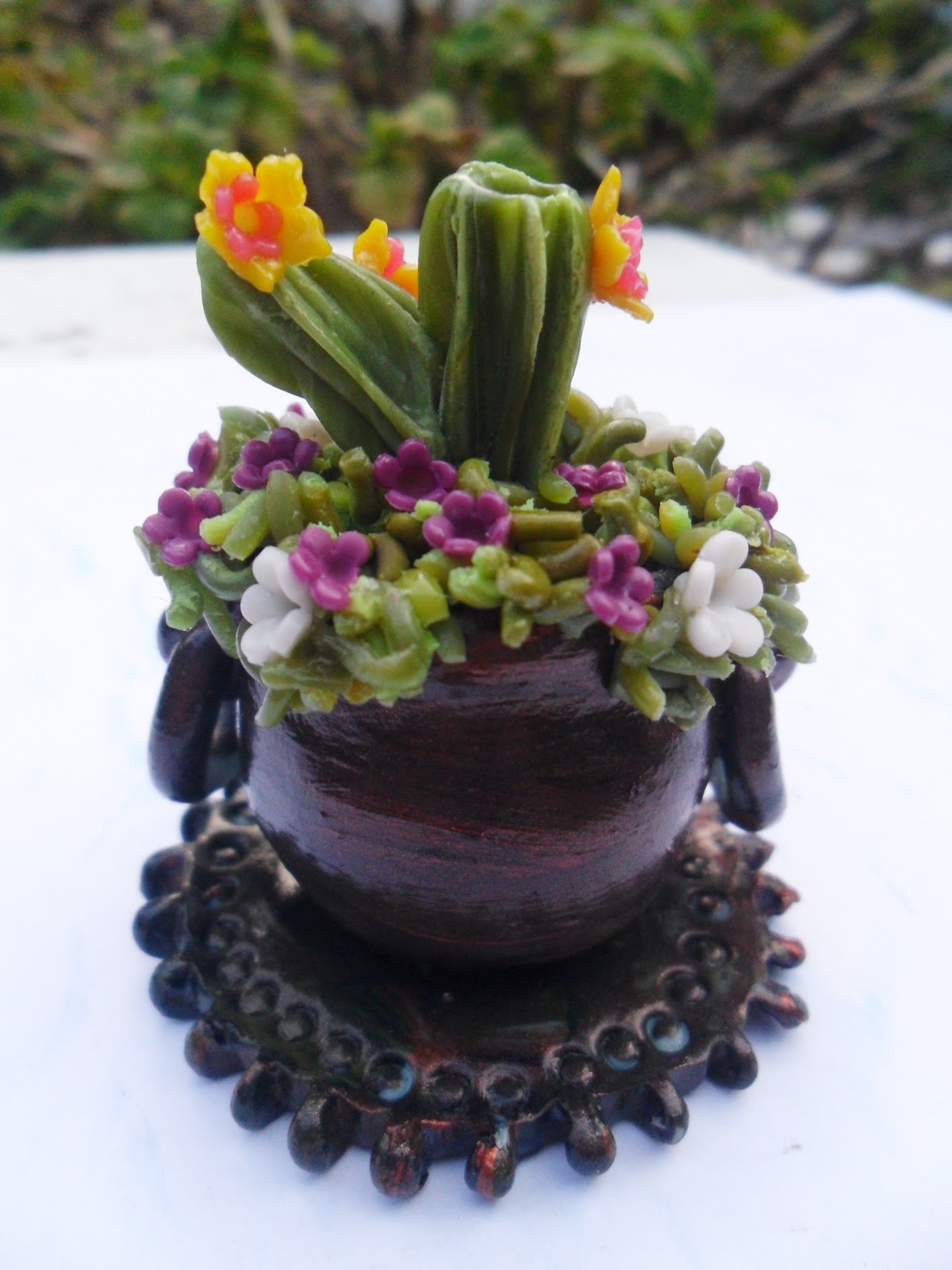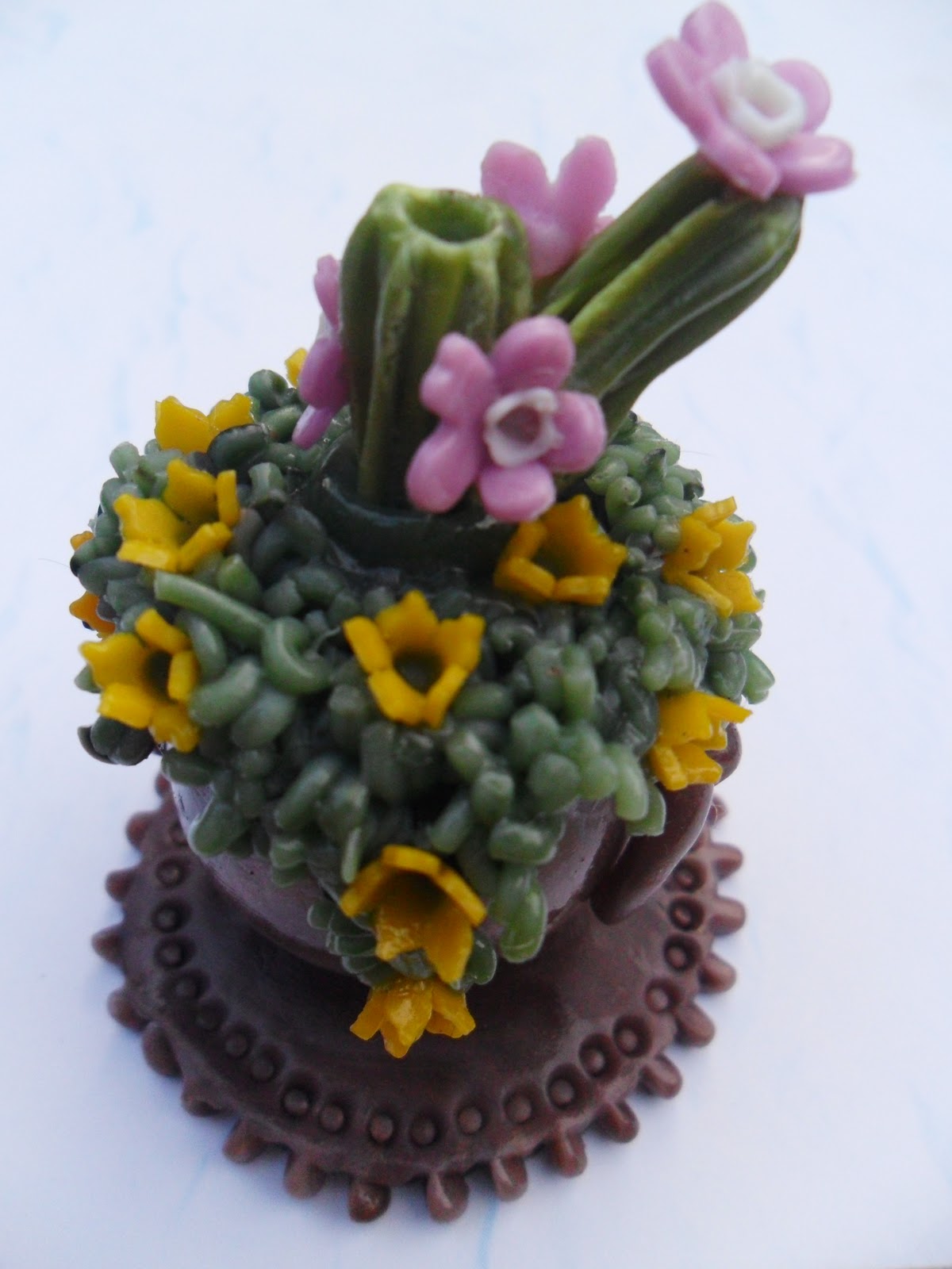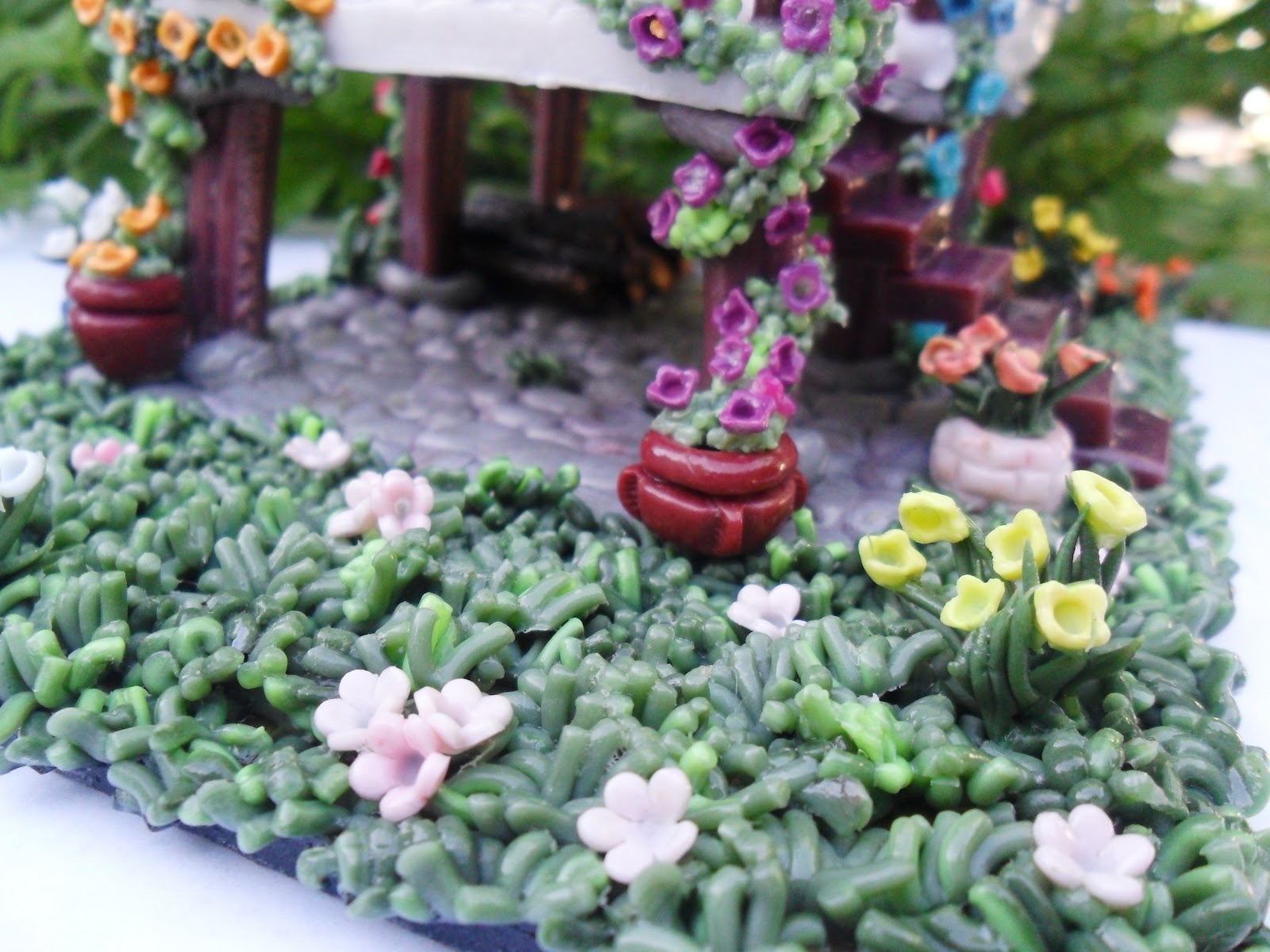 5. Для большей реалистичности возьмите немного зеленой и желтой пластики, смешайте, но не доводите до равномерного цвета. Сделайте маленькую лепешечку и придайте ей рельеф с помощью зубочистки.