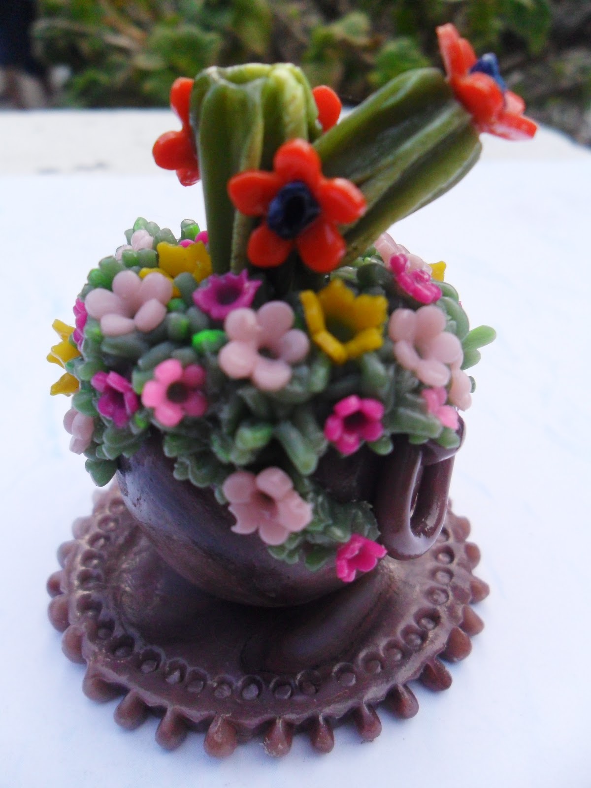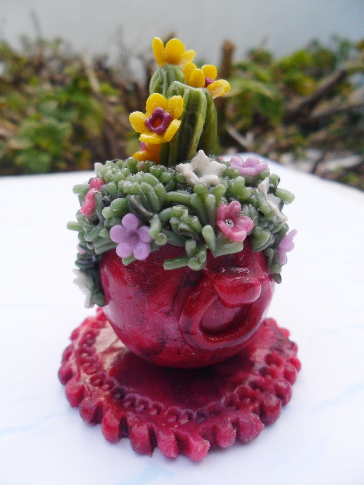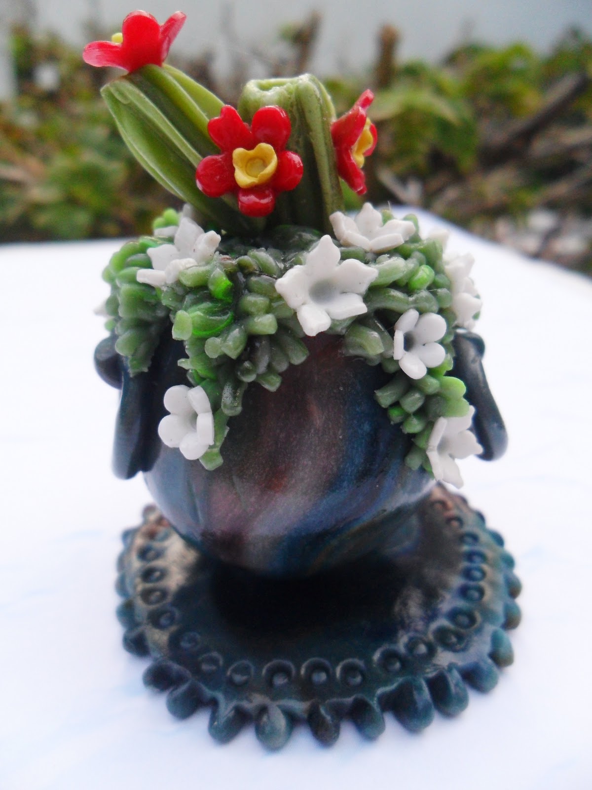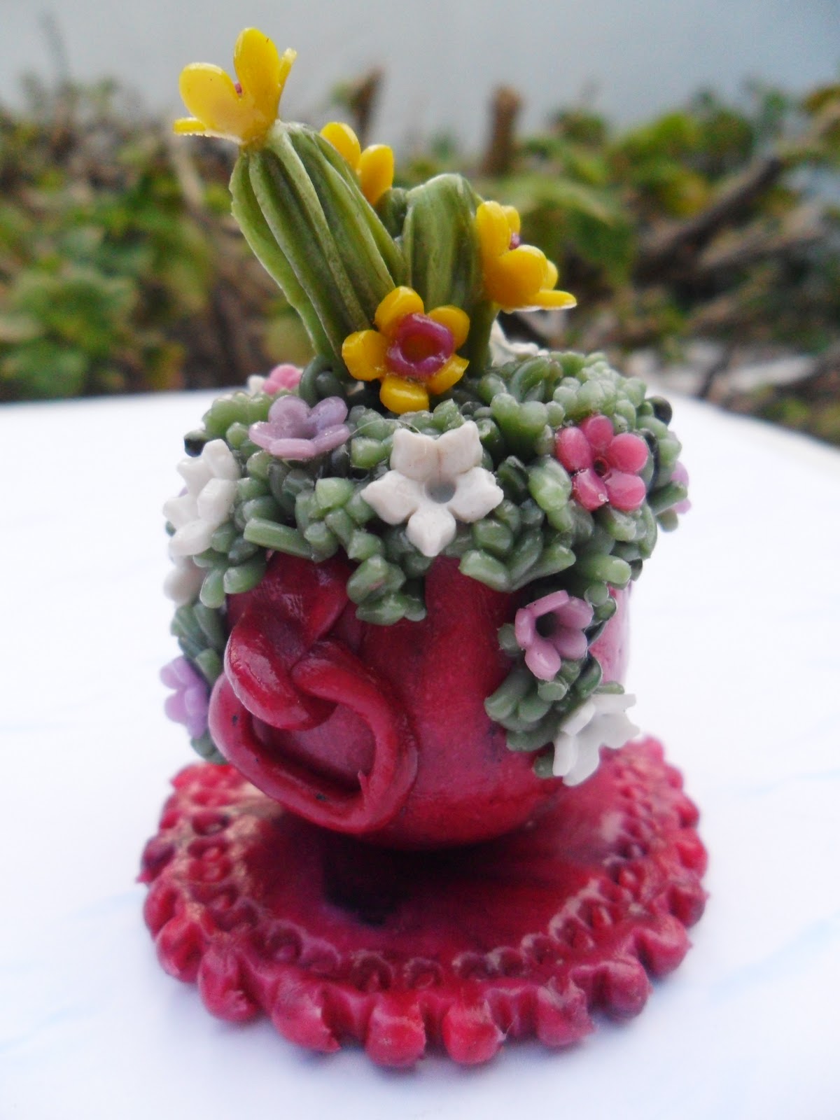 3. Возьмите кусочек пластики и сформируйте из него шарик. Используйте палочку с закругленным концом для формирования цветочной чашечки: прижмите шарик к концу палочки, вдавите его и пальцами аккуратно прокатайте края получившейся чашечки.