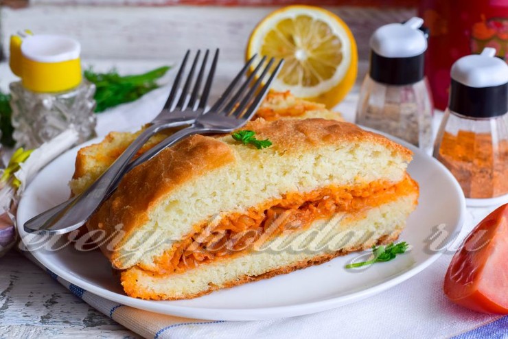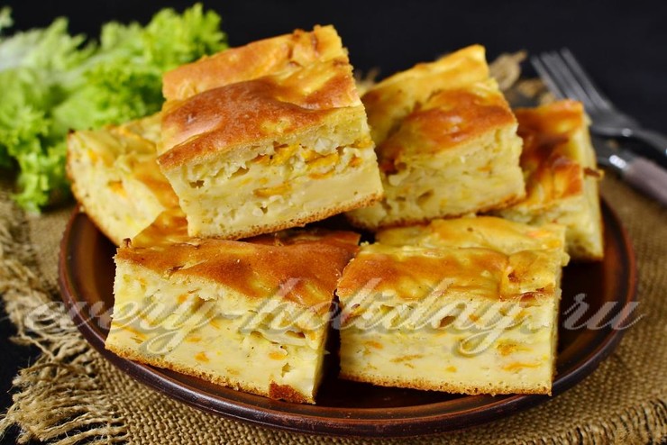 Этот вариант хорош тем, что само тесто вымешивать не нужно, а именно этой части боятся неопытные хозяюшки. Также пирог имеет просто бесподобный вкус, несмотря на отсутствие молочных продуктов.