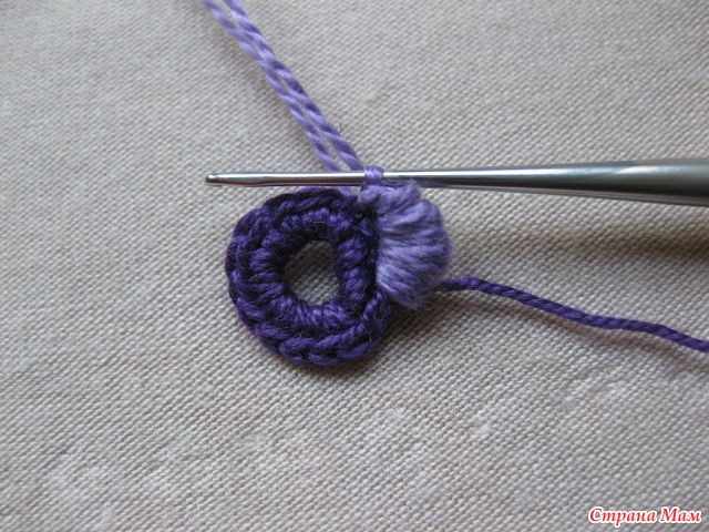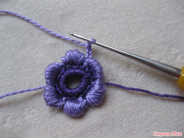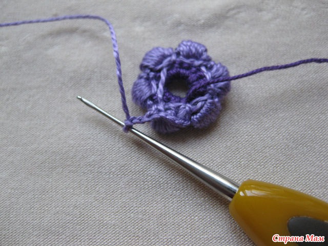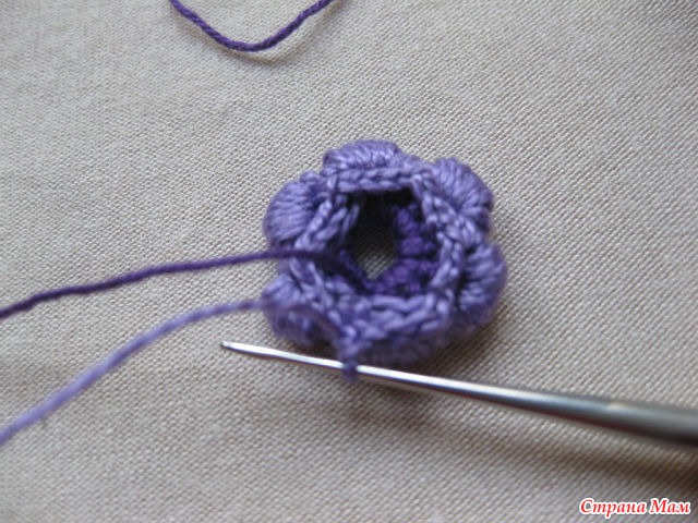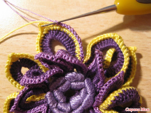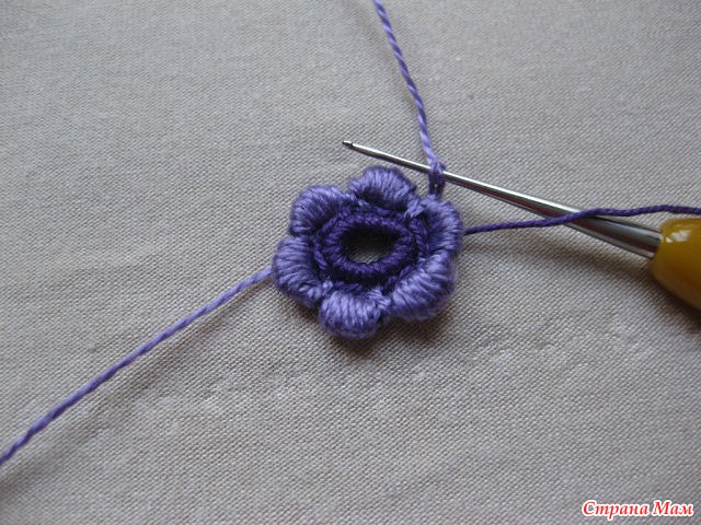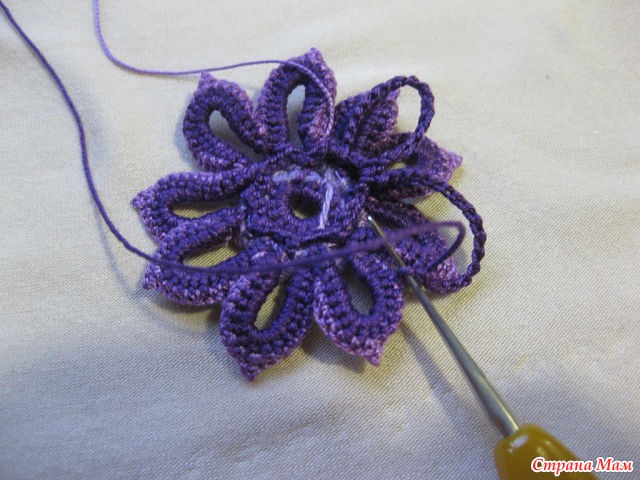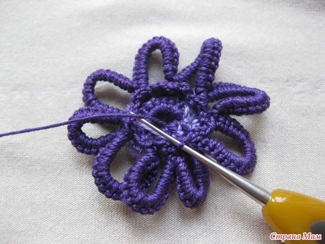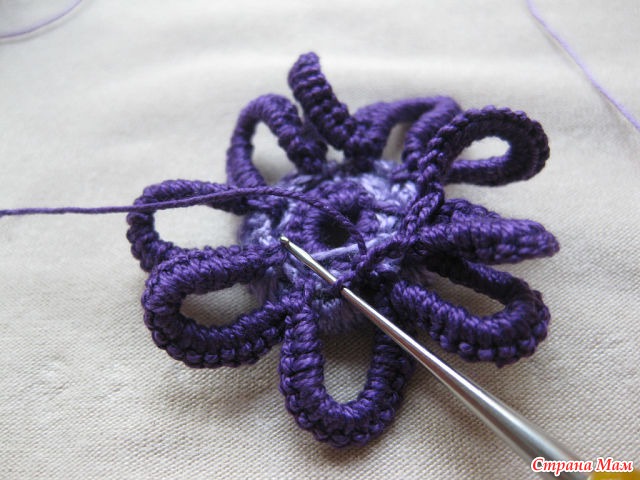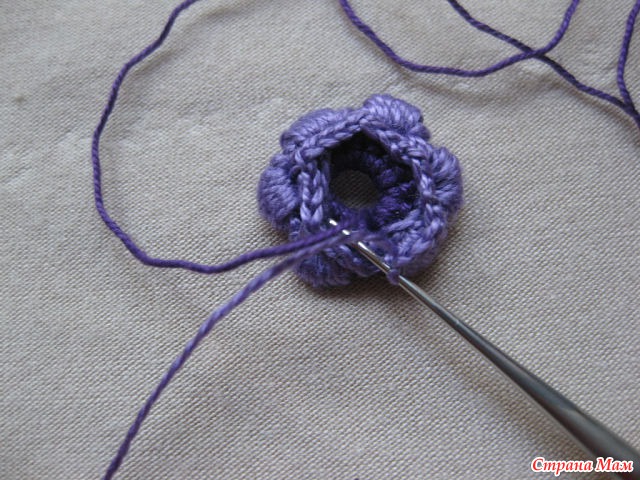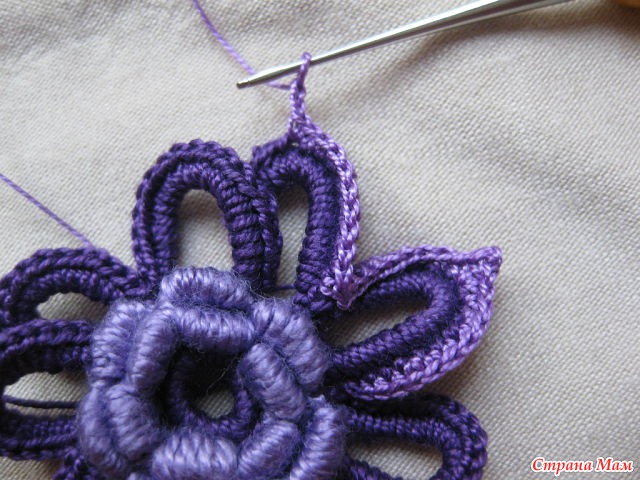24)Нитью другого цвета обвязываем столбиками б. н. лепестки. Обратите внимание.