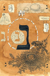 И давняя, и все-таки связанная именно с традиционным еврейским искусством. Ведь метод микрографии — создание изображений из текста, когда буквы складываются в рисунок, — это один из основных и древнейших методов еврейской иллюстрации. Текст теряет свойства текста, а получившийся рисунок — уже не совсем рисунок: они обмениваются своими качествами и дополняют друг друга. Именно эта техника подвела меня к идее в своих работах использовать еврейскую графику. К тому же, для современного искусства такой подход, при котором расшатаны границы между текстом и изображением, вполне нормален. Важно еще и то, что сам вид еврейских букв очень орнаментален, поэтому надпись, из них составленная, получает в картине дополнительные орнаментальные свойства.