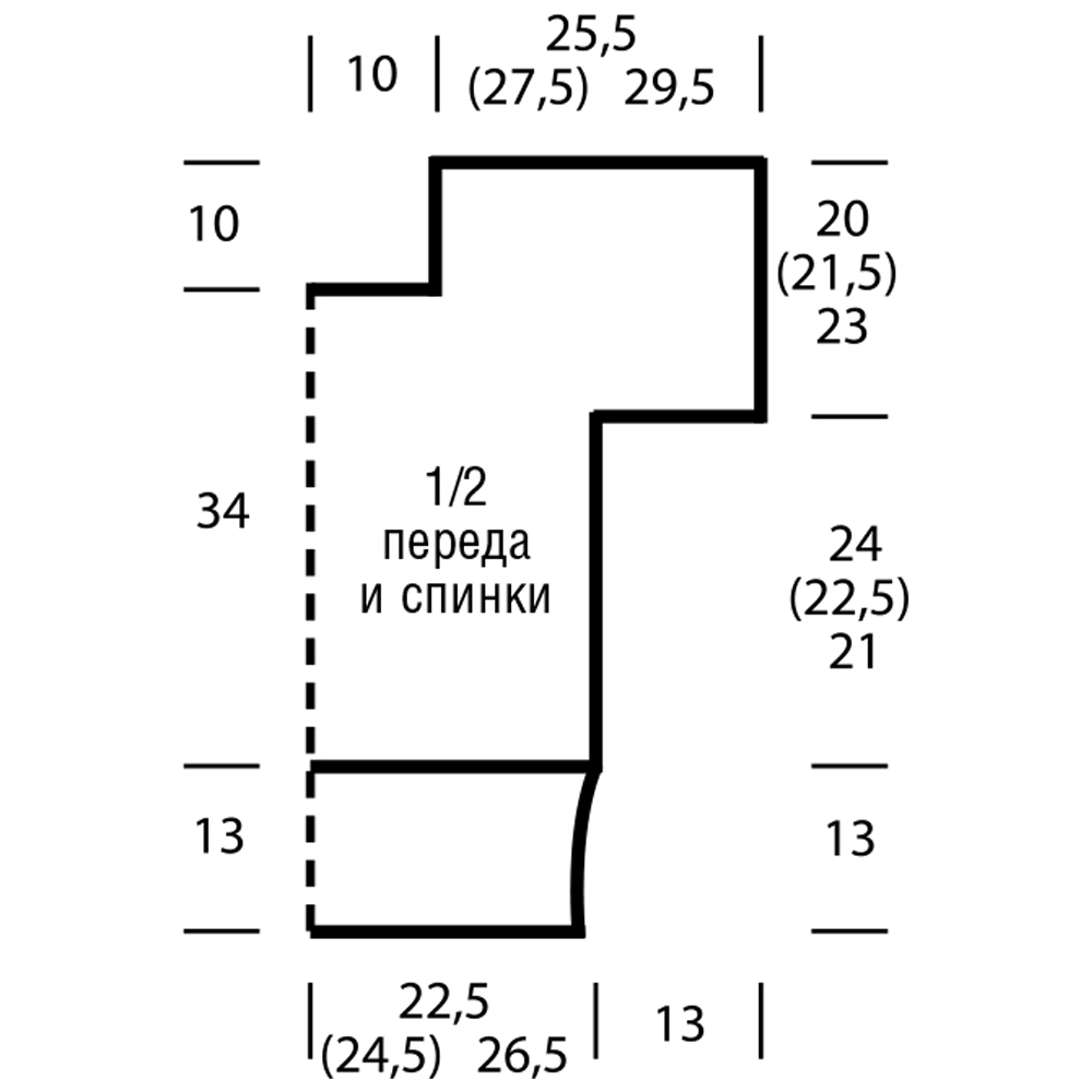 Через 24 см = 58 рядов (22,5 см = 54 ряда) 21 см = 50 рядов от планки набрать для рукавов с обеих сторон 1 x 32 новые петли = 177 (187) 197 п.