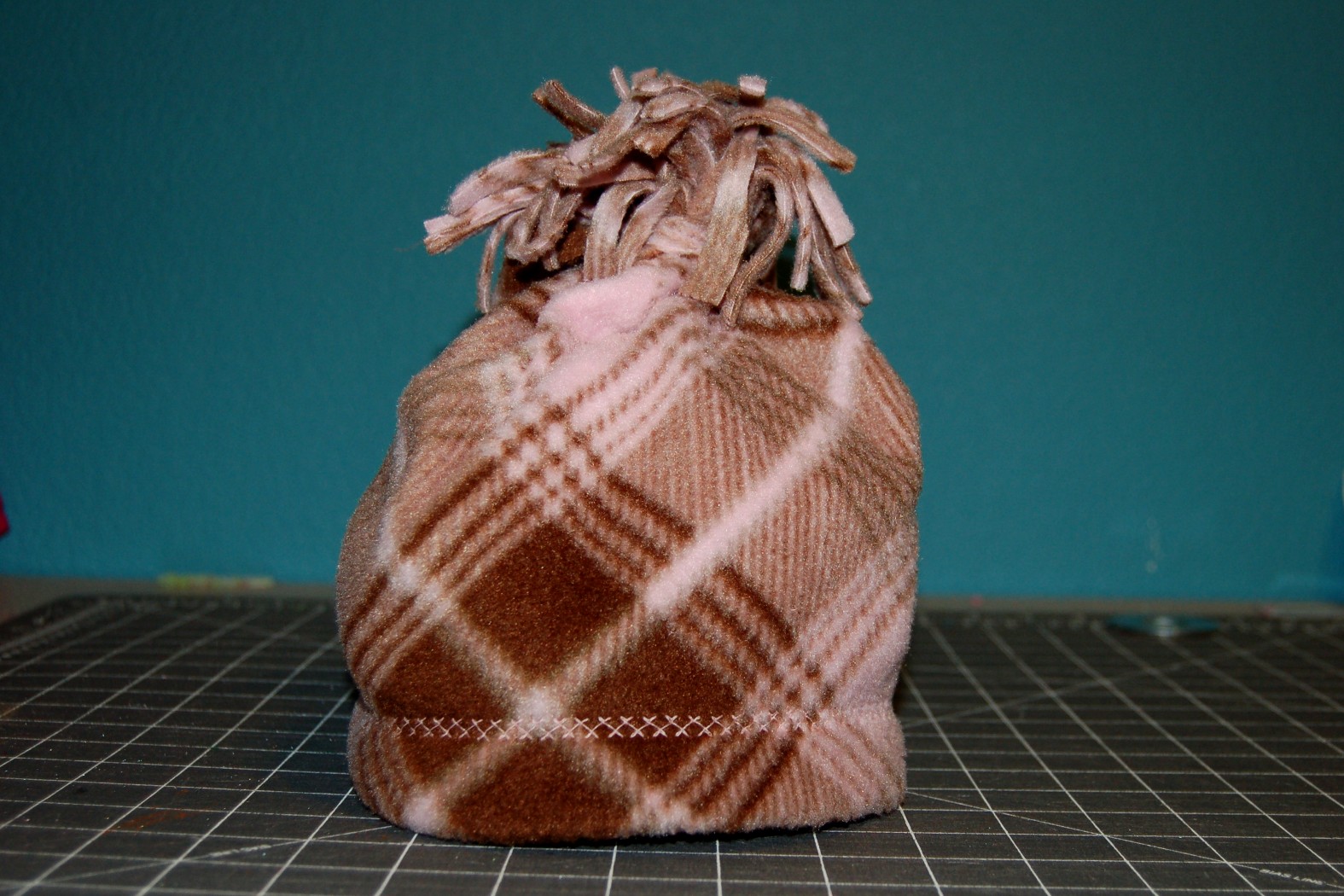 С вашей стороны, собрать верхнюю часть шляпы, прямо под бахромой как можно более равномерно.