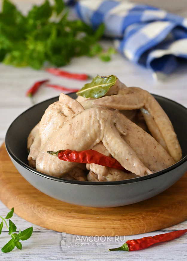 Соберите необходимые продукты для приготовления вареных куриных крыльев.