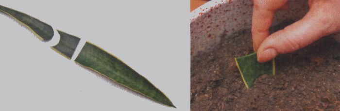 Размножить сансевиерию можно делением корневища, листовыми черенками, а также боковыми побегами.